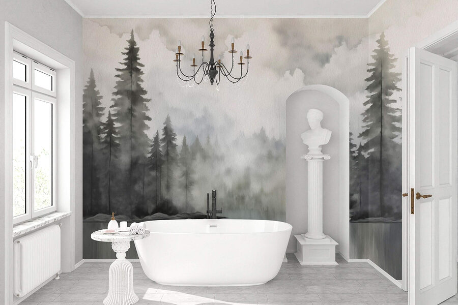 Transformez n’importe quel espace avec cette superbe aquarelle murale représentant une forêt et un lac serein. Imaginez que vous entrez dans une pièce et que vous avez l’impression d’être dans l’étreinte de la nature. Les teintes douces de gris et de vert offrent une ambiance apaisante, parfaite pour créer une retraite paisible dans votre maison.