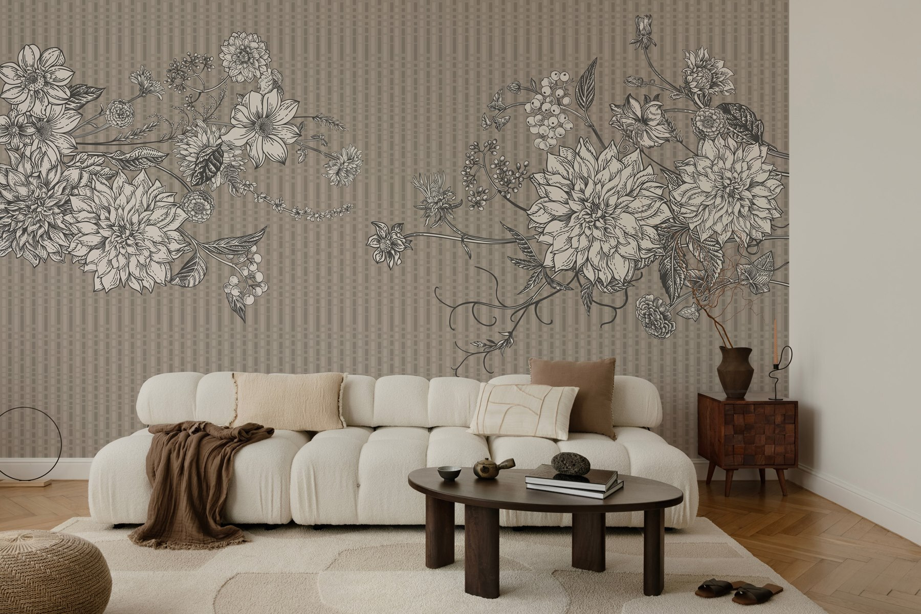 Transformez n’importe quelle pièce en un havre de paix grâce à cette superbe peinture murale – l’élégance florale dans un design harmonieux. Imaginez ces fleurs magnifiquement esquissées qui se déploient sous vos yeux, mêlant des tons doux et terreux à des détails complexes. C’est comme si vous faisiez entrer un jardin à l’intérieur, les éternuements en moins. Imaginez que vous vous réveillez chaque jour avec cette gracieuse floraison qui vous regarde et vous met instantanément de bonne humeur. Qu’il s’agisse d’un coin lecture tranquille ou d’un mur gênant que tout le monde semble ignorer, cette peinture murale vole la vedette. Qui aurait cru qu’un décor floral pouvait être aussi rafraîchissant ?