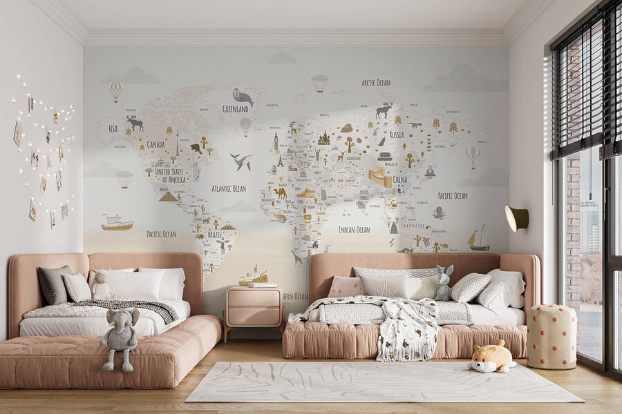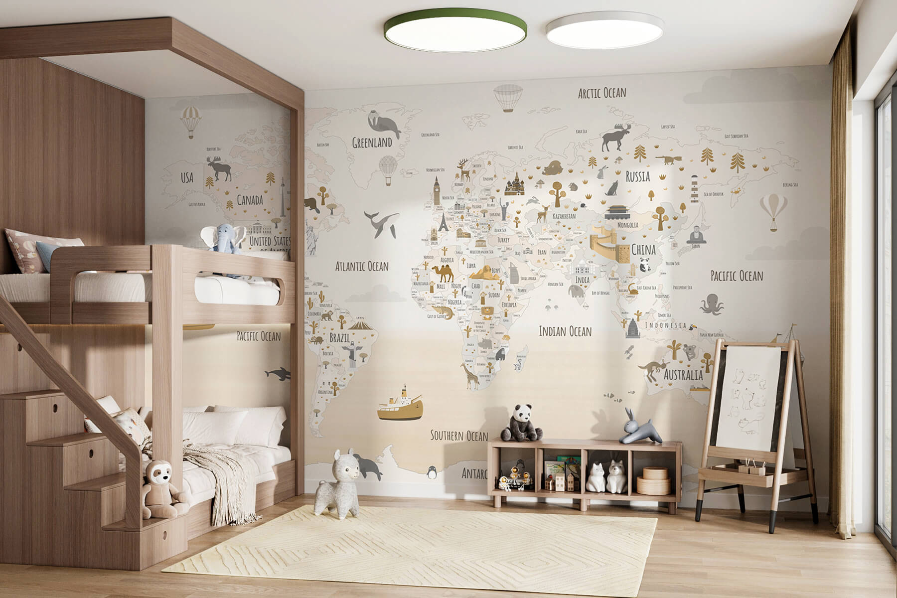 Transformez n’importe quel espace en une petite zone d’aventure avec la carte du monde Papier peint. Imaginez les enfants assis les jambes croisées, les yeux brillants, traçant avec leurs doigts les continents et les océans. Cette peinture murale n’est pas seulement de l’art, c’est une invitation à l’exploration et à l’apprentissage. Avec ses illustrations ludiques d’animaux et de lieux emblématiques, elle suscite la curiosité et enflamme l’imagination. Qu’il s’agisse d’une chambre d’enfant ou d’un coin bureau, elle ajoute une touche de fantaisie qui donne à chaque coup d’œil l’impression d’une mini escapade. Et qui sait ? Peut-être inspirera-t-il de futurs globe-trotters ! Illuminez ces murs et laissez la nostalgie s’installer !