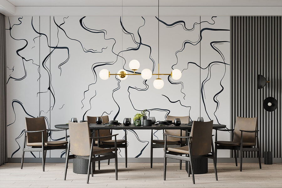Vous souhaitez transformer une pièce ? Cette peinture murale noire et blanche pourrait être votre arme secrète. Avec ses lignes élégantes et fluides, il apporte un dynamisme subtil qui rehausse instantanément n’importe quel espace. Imaginez un coin lecture confortable ou une salle à manger chic : l’ambiance sereine de cette peinture murale rend l’ensemble un peu plus sophistiqué. C’est comme si l’on ajoutait une œuvre d’art qui vous enveloppe, dégageant une énergie apaisante tout en restant visuellement intéressante. Vos amis entreront, jetteront un coup d’œil au mur et se demanderont comment vous avez réussi à obtenir un look aussi élégant. Laissez les lignes danser et la magie opérer !
