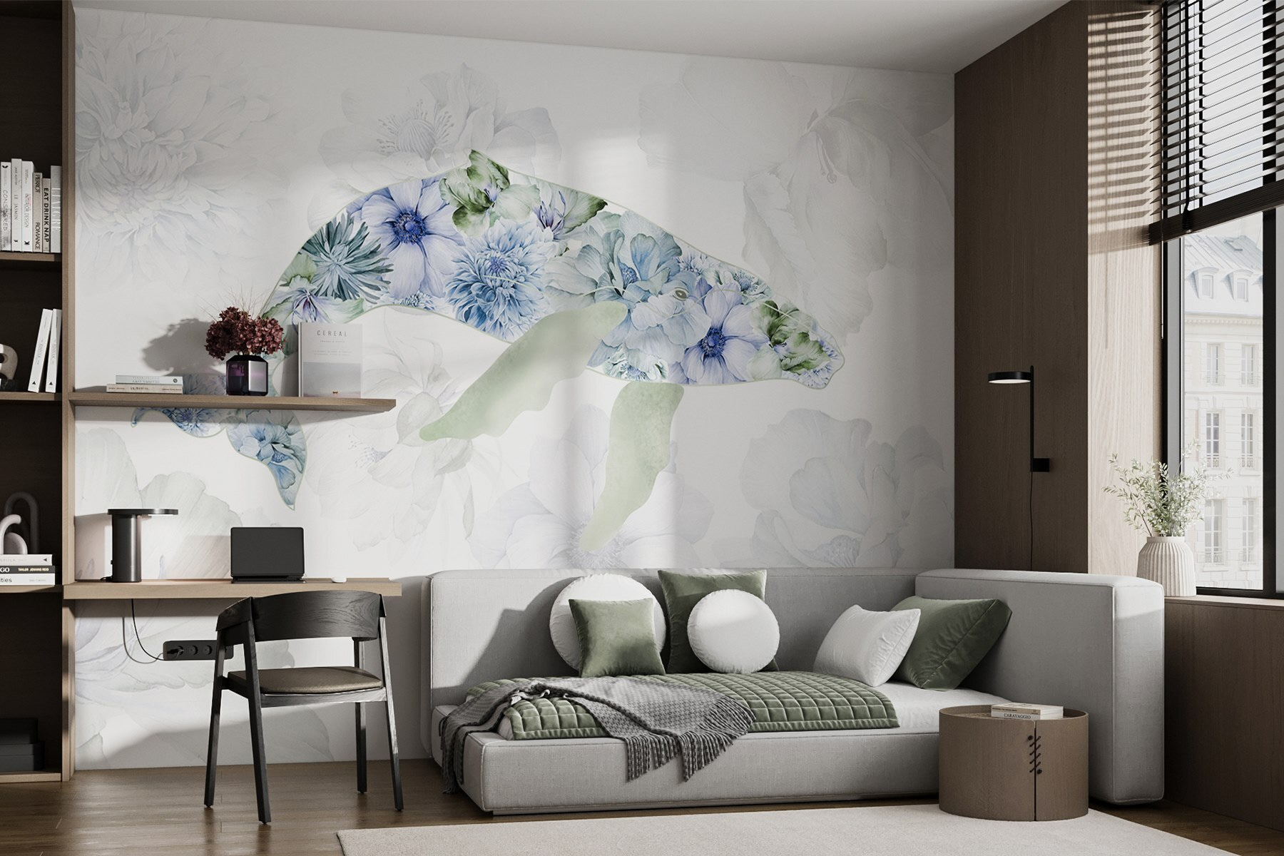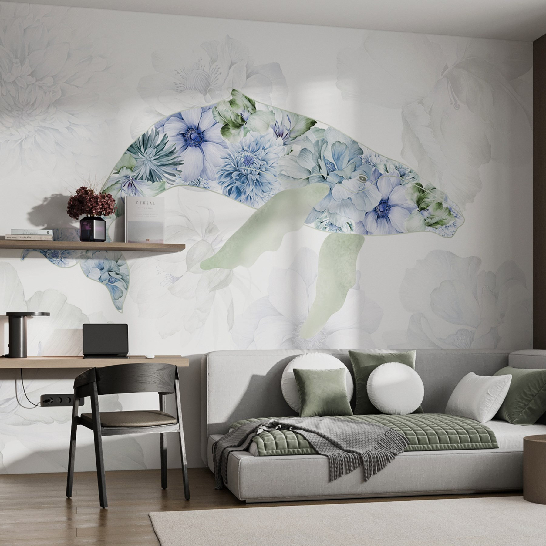 Transformez votre espace avec cette peinture murale enchanteresse représentant une baleine débordant de fleurs ludiques. Imaginez que vous entrez dans une pièce et que vous ressentez instantanément le calme de la mer et la fantaisie d’un jardin. Les teintes douces et les pétales délicats invitent à une ambiance douce et sereine, parfaite pour un coin lecture confortable ou même une chambre d’enfant enjouée. C’est comme si vous aviez un morceau de nature sur votre mur, capturant la joie de la vie océanique et la beauté florale. Imaginez vos amis l’admirer et vous demander où vous avez trouvé un tel bijou. Plongez dans l’ambiance et laissez la peinture murale donner vie à vos murs !