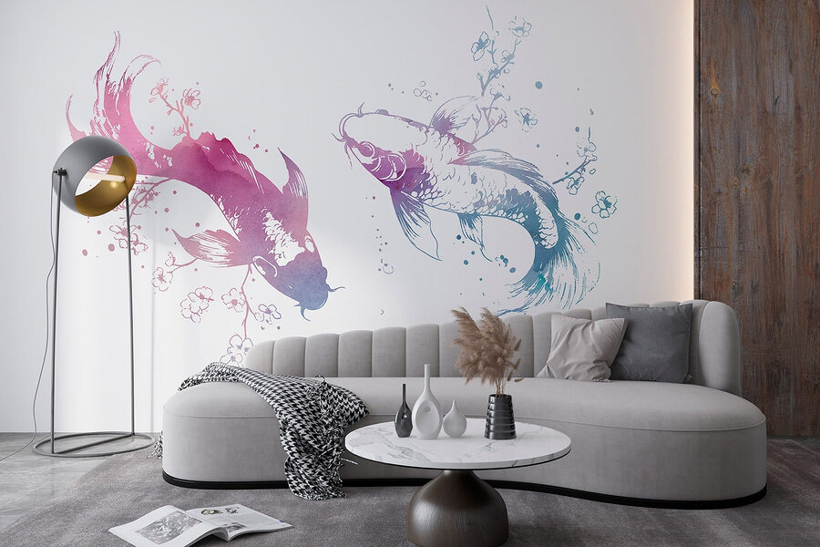 Transformez votre espace avec cette peinture murale enchanteresse représentant deux élégants poissons nageant au milieu d’éclaboussures d’aquarelle. C’est comme si vous apportiez une tranche de bord de mer dans votre maison, sans le sable dans vos chaussures. Des teintes douces dansent sur la peinture murale, évoquant un sentiment de calme qui peut facilement égayer n’importe quelle pièce. Imaginez-vous assis dans un coin confortable, en train de siroter un thé, tandis que ces gracieux poissons semblent glisser à côté de vous – vous pourriez même oublier que vous êtes à l’intérieur. C’est une touche charmante qui évoque la sophistication et la sérénité, parfaite pour créer une atmosphère paisible. Ne soyez pas surpris si vous commencez à discuter avec les poissons ; ils ont peut-être des histoires à raconter !