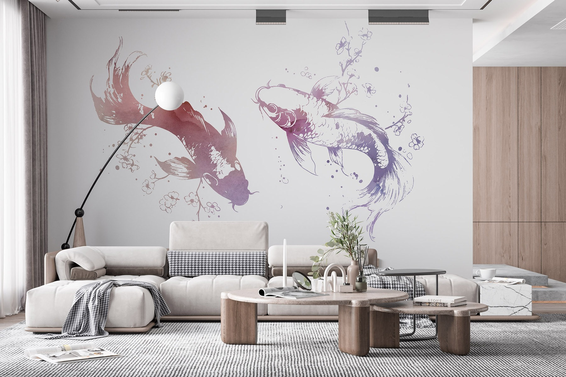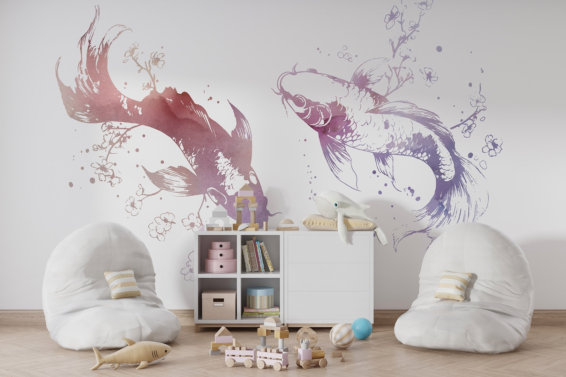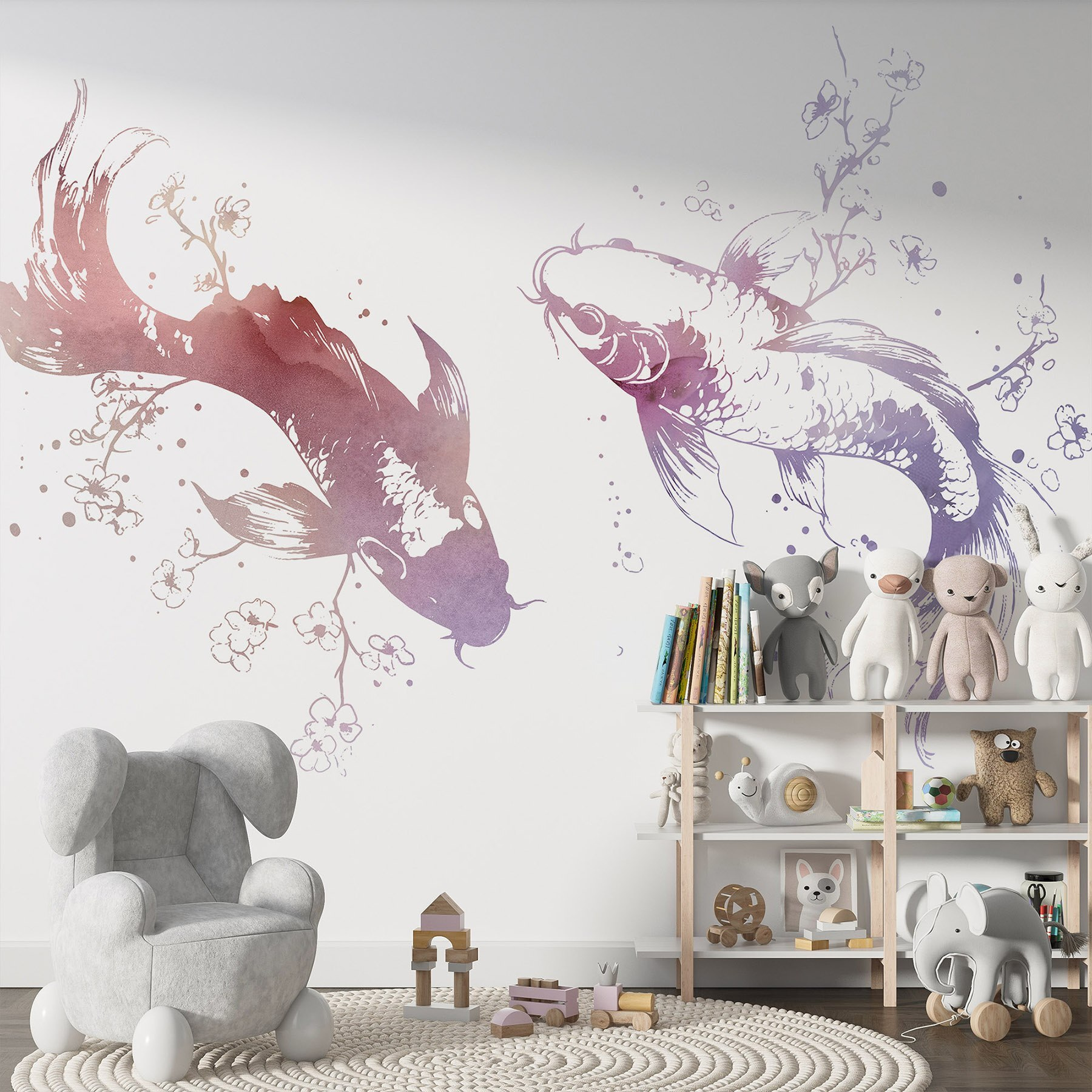 Transformez votre espace en un pays des merveilles aquatique avec cette peinture murale enchanteresse représentant deux gracieux poissons nageant au milieu de fleurs délicates et de feuilles tourbillonnantes. Imaginez que vous pénétrez dans un monde sous-marin serein, où l’art danse sur vos murs, évoquant le calme et la créativité. Le style aquarelle de cette peinture murale ajoute une touche fantaisiste, ce qui la rend parfaite pour un coin lecture confortable ou un espace de vie au thème de la plage. Imaginez-vous en train de siroter un thé tandis que les poissons semblent glisser doucement, faisant entrer la nature dans votre maison. C’est comme une oasis personnelle, sans les pieds mouillés et les algues !