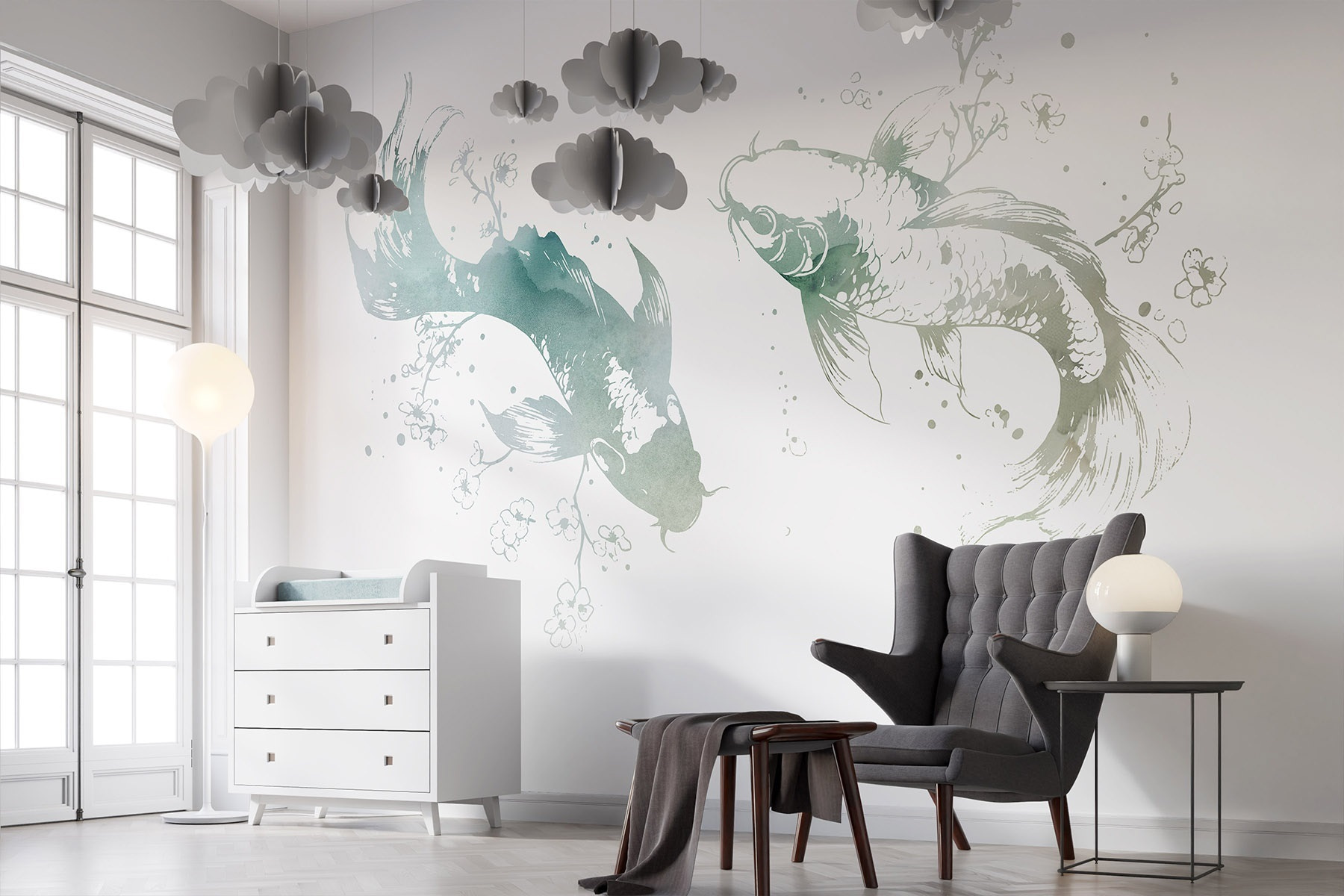 Les amis ne manqueront pas de remarquer cette jolie pièce, qui ne manquera pas d’alimenter les conversations. Que ce soit dans un salon confortable, une salle à manger animée ou même un espace de travail paisible, cette peinture murale invite à la créativité et à la tranquillité. De plus, qui n’aime pas les poissons ? Ils se contentent de nager, de s’occuper de leurs affaires et d’ajouter du charme et une touche de fantaisie. Ne vous étonnez pas s’il vous inspire un peu de rêverie ! Plus qu’un décor, c’est un petit moment d’évasion à chaque fois que vous entrez dans la pièce.