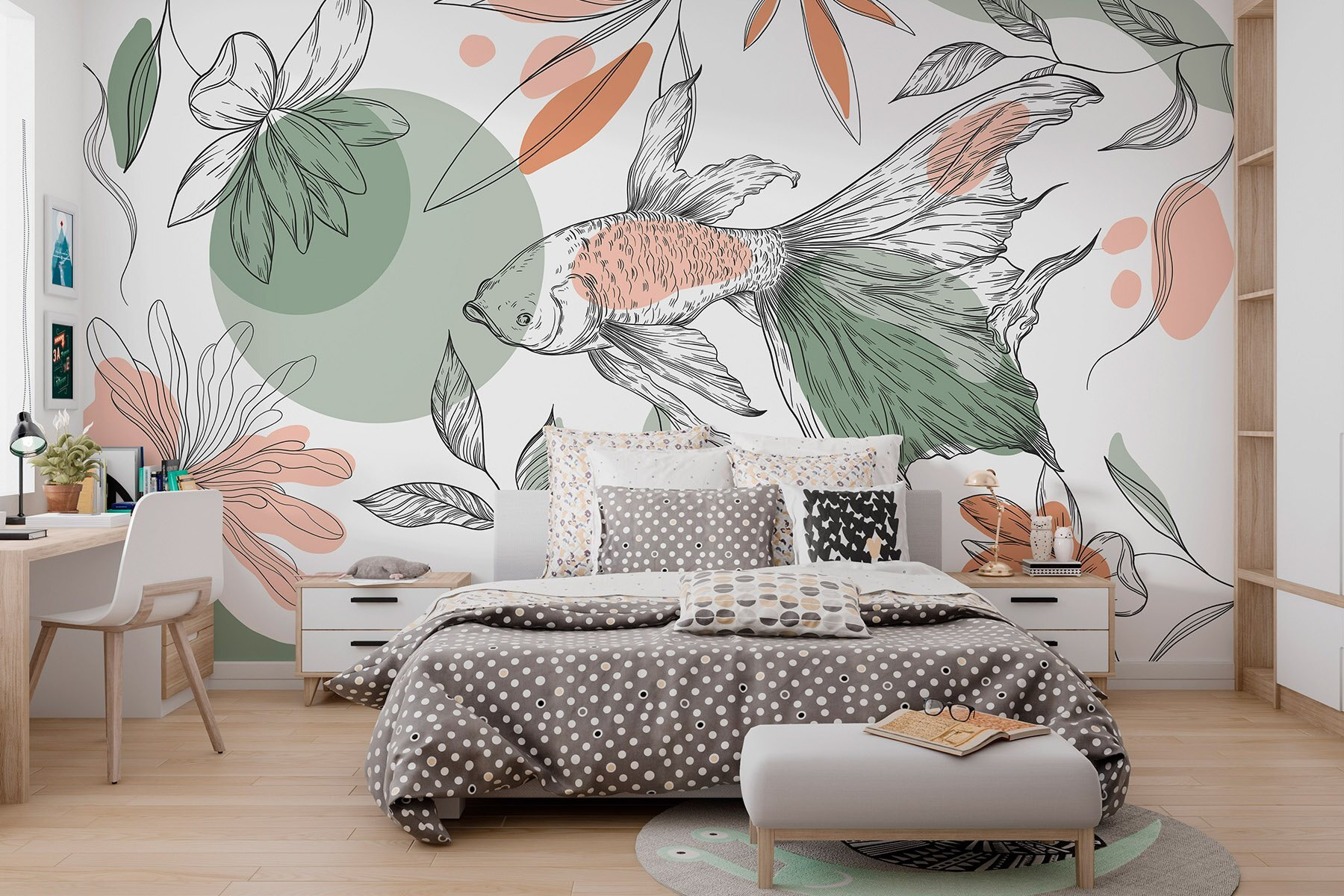 Transformez n’importe quelle pièce en oasis de sérénité grâce à cette ravissante peinture murale représentant des poissons espiègles et des plantes luxuriantes sur un fond lumineux. On a l’impression de passer une journée au bord d’un étang de jardin tranquille, où chaque regard vous entraîne dans un monde de calme. Imaginez que vous sirotiez votre café du matin, entouré de ces douces créatures et d’une flore vibrante. Parfaite pour un coin douillet ou un salon animé, cette peinture murale apporte une touche de fraîcheur à votre espace. Il ne s’agit pas seulement d’un décor, mais aussi d’un sujet de conversation, d’une petite tranche de nature qui semble invitante et joyeuse, tout comme une discussion amicale avec un voisin de l’autre côté de la clôture. De plus, qui ne voudrait pas se sentir entouré d’une telle beauté au quotidien ? Plongez dans le charme et regardez vos murs s’animer !