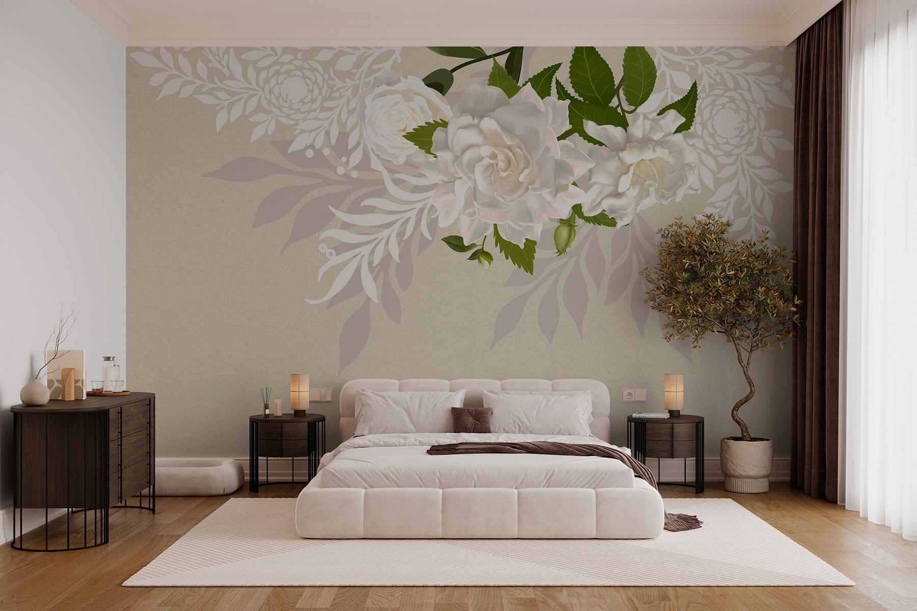 Transformez votre espace avec une délicieuse touche de nature grâce à ce “Muraux Fleurs blanches avec feuilles vertes”. Imaginez que vous entrez dans une pièce où de douces fleurs blanches et des feuilles vertes luxuriantes vous accueillent comme un vieil ami. Les couleurs douces dansent sur le mur, offrant une retraite tranquille après l’agitation de la journée. Qu’il s’agisse de décorer un salon confortable ou une chambre à coucher sereine, cette peinture murale ajoute une touche d’élégance et de chaleur. C’est comme si vous faisiez entrer un jardin secret à l’intérieur. De plus, c’est un excellent moyen d’engager la conversation – qui ne voudrait pas parler de fleurs ? Faites entrer un petit bout de nature dans votre maison !