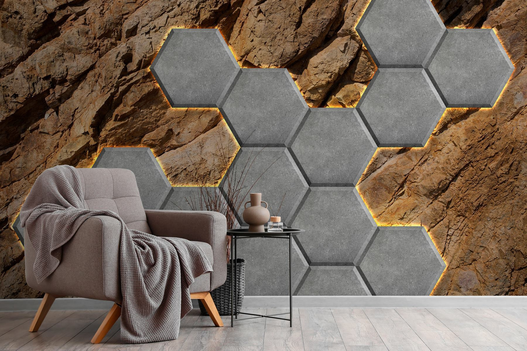 Transformez votre espace avec cette peinture murale qui présente de superbes hexagones sur fond de rochers accidentés. C’est comme si vous apportiez un morceau de nature à l’intérieur, en ajoutant une touche de terre qui peut ancrer n’importe quelle pièce. Imaginez-vous en train de siroter un café tout en vous imprégnant des vibrations chaudes et texturées – vous vous sentirez comme dans une mini retraite. Le design en pierre n’est pas seulement attrayant sur le plan visuel, c’est aussi un sujet de conversation instantané. Les amis se pencheront peut-être un peu plus près pour admirer les détails. De plus, il convient parfaitement aux styles moderne et rustique. Une touche de tradition qui fait mouche.