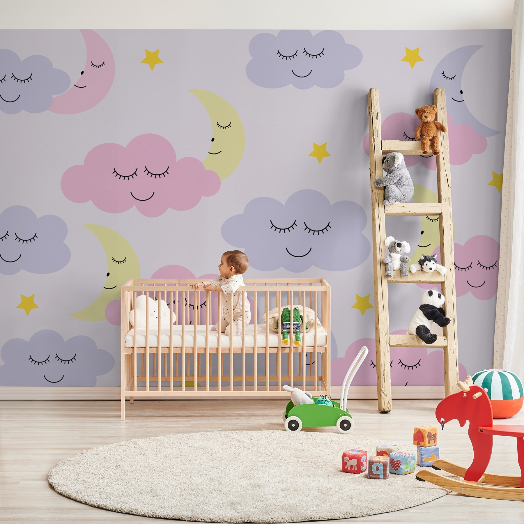 Transformez l’espace de votre enfant en un sanctuaire de rêve grâce à cette adorable peinture murale représentant des nuages joyeux, des étoiles espiègles et des lunes endormies. C’est comme si le ciel nocturne avait fait peau neuve ! Imaginez les sourires des enfants à l’heure du conte, allongés sous des nuages roses et violets duveteux, en train de faire de beaux rêves. Chaque élément est comme une étreinte chaleureuse, invitant à l’imagination et à l’émerveillement. Parfait pour une chambre d’enfant ou une salle de jeux, ce n’est pas seulement un décor ; c’est une évasion douillette où les rêves s’envolent et les aventures commencent. Qui n’aurait pas envie de s’endormir sur cette scène charmante ?
