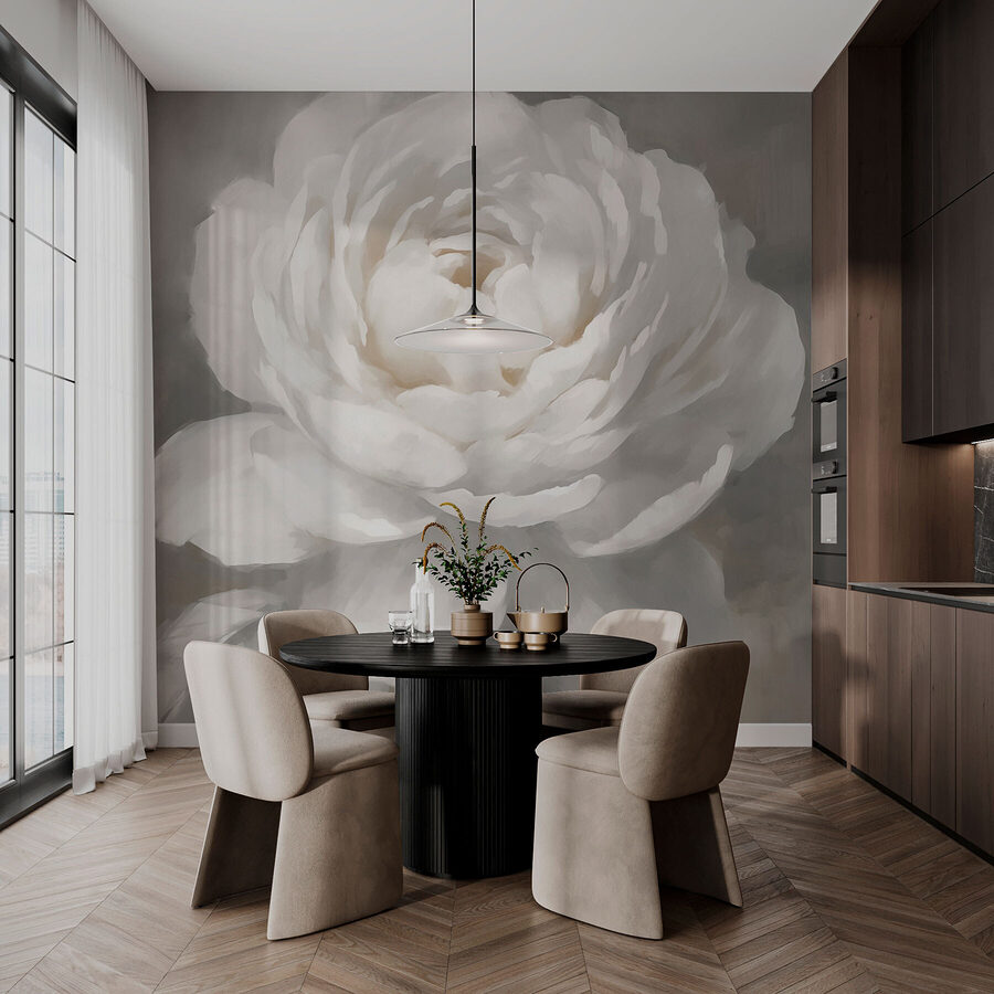 Entrez dans une ambiance sereine avec cette peinture murale représentant une fleur blanche de rêve, associée de manière experte à des accents doux et feuillus. Imaginez que vous entrez dans un espace qui ressemble à une douce brise un matin de printemps. Les tons calmes créent une atmosphère invitante, parfaite pour se détendre après une longue journée. C’est presque comme si la fleur murmurait des secrets de tranquillité et de renouveau. Qu’elle soit placée dans un coin lecture confortable ou dans un couloir où souffle la brise, cette peinture murale transforme le quotidien en quelque chose de spécial. C’est le genre de décor qui pourrait même inspirer un peu de rêverie – qui n’en aurait pas besoin ? Plongez dans un monde où la nature et l’art dansent ensemble, faisant chanter vos murs.