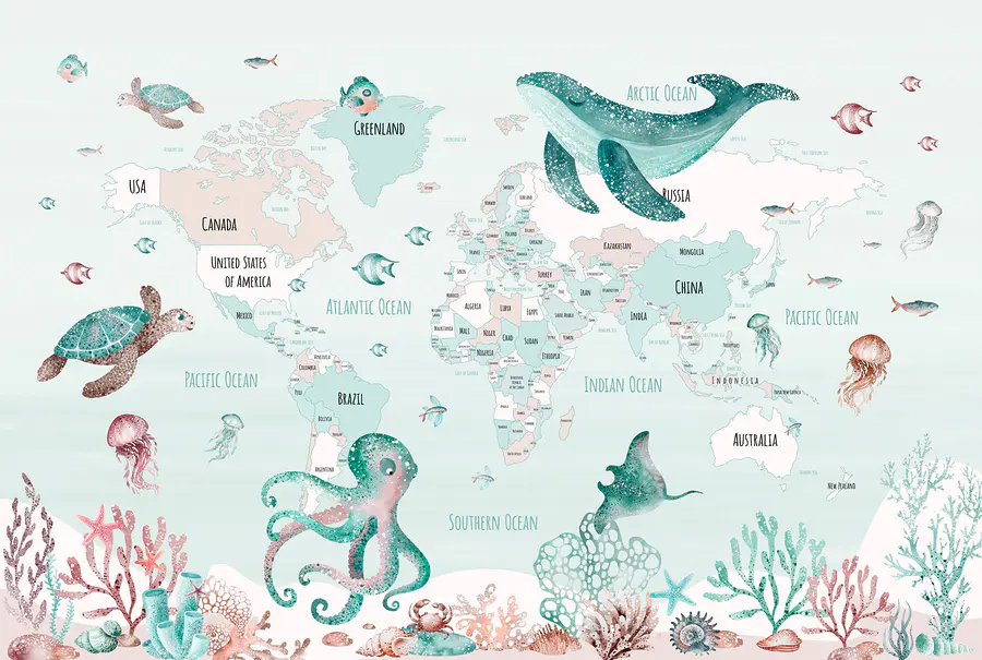 Transformez la chambre de n’importe quel enfant en une aventure sous-marine fantaisiste grâce à cette vibrante carte du monde murale mettant en scène de charmantes créatures marines. Imaginez les petits regardant les yeux écarquillés des tortues amicales, des dauphins espiègles et des pieuvres curieuses, éveillant leur imagination tout en leur faisant découvrir les océans et les continents. Les couleurs douces créent une ambiance reposante, parfaite pour les nuits de rêve ou les câlins à l’heure du conte. Ce n’est pas seulement un décor, c’est une escapade dans l’océan directement sur les murs ! Cette peinture murale peut transformer n’importe quel espace en un havre de paix où chaque jour ressemble à un nouveau voyage. Qui ne voudrait pas s’y plonger ?