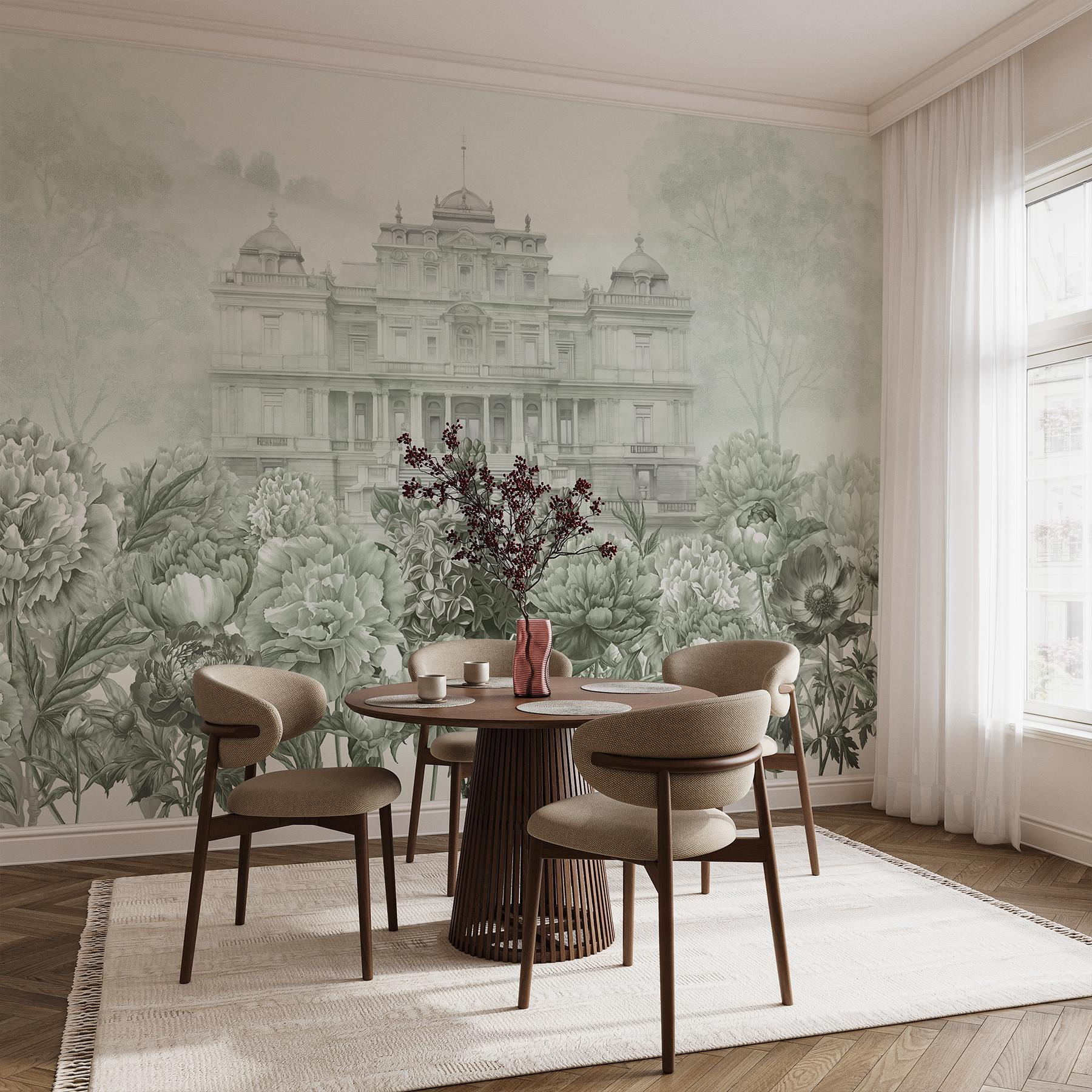 Transformez n’importe quel espace avec cette superbe peinture murale représentant un grand bâtiment blanc et des fleurs éclatantes. Imaginez que vous entrez dans une pièce et que vous êtes accueilli par une magnifique explosion de pivoines, tandis qu’une majestueuse toile de fond attire tranquillement l’attention. C’est comme si vous apportiez un morceau de magie de jardin serein à l’intérieur. Parfaite pour ceux qui aiment un peu d’élégance mêlée au charme de la nature, cette peinture murale peut donner un ton apaisant ou susciter des conversations joyeuses. Imaginez vos amis s’émerveillant devant les détails en sirotant un thé, ou une soirée cinéma confortable se sentant un peu plus spéciale. La touche finale parfaite pour une maison élégamment fleurie.