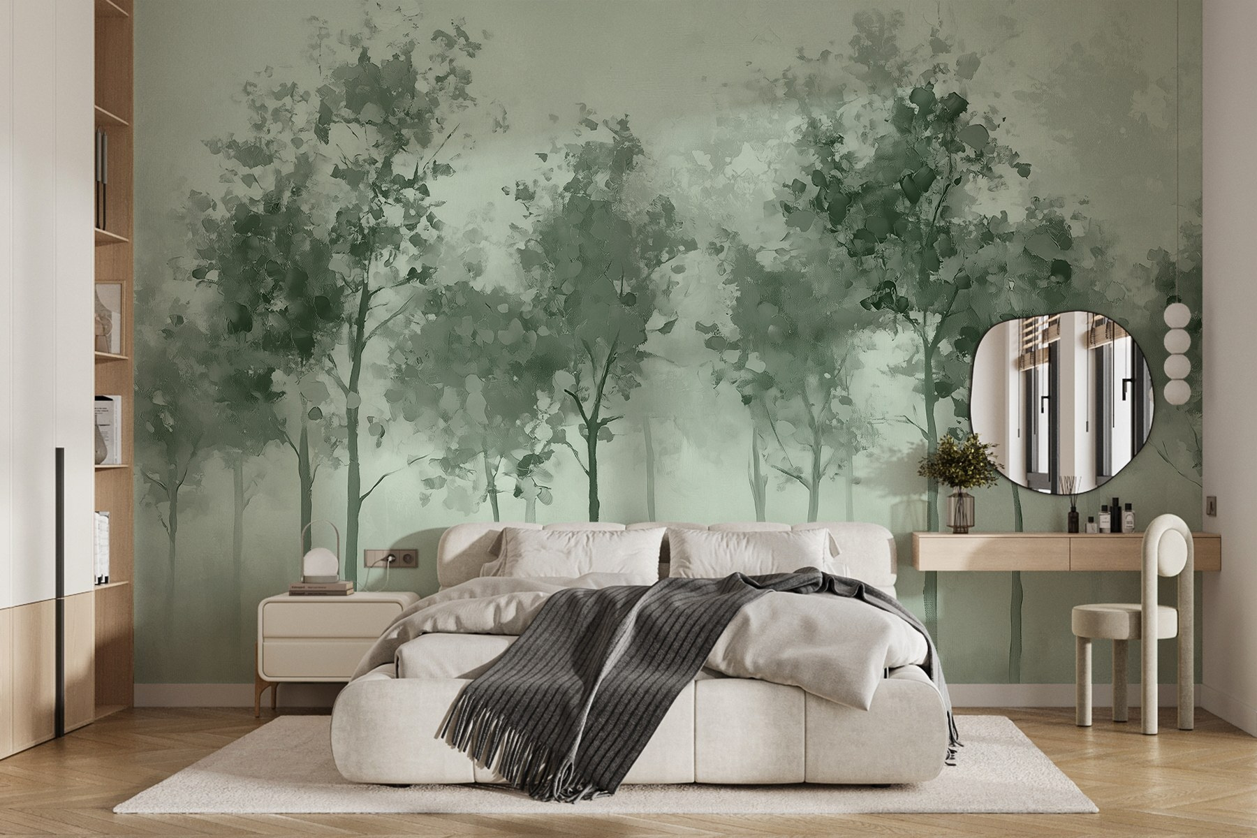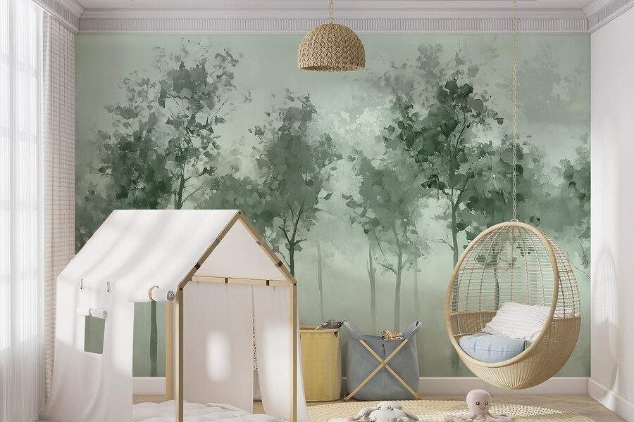 Les verts doux et l’effet aquarelle créent une atmosphère apaisante, parfaite pour ceux qui souhaitent se détendre après une longue journée. Il a cette qualité de rêve qui stimule l’imagination – peut-être vous sentirez-vous inspiré de faire une promenade dans les bois ou simplement de savourer des moments de tranquillité à la maison. Qu’il s’agisse d’un coin douillet ou d’un mur d’apparat, cette peinture murale invite à la paix et à la beauté, faisant de chaque coup d’œil une petite évasion de la réalité.