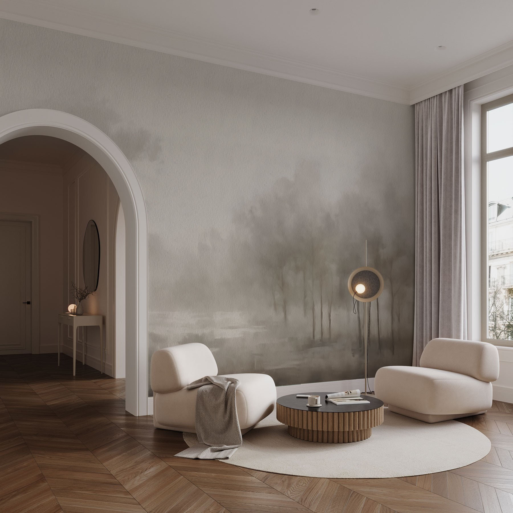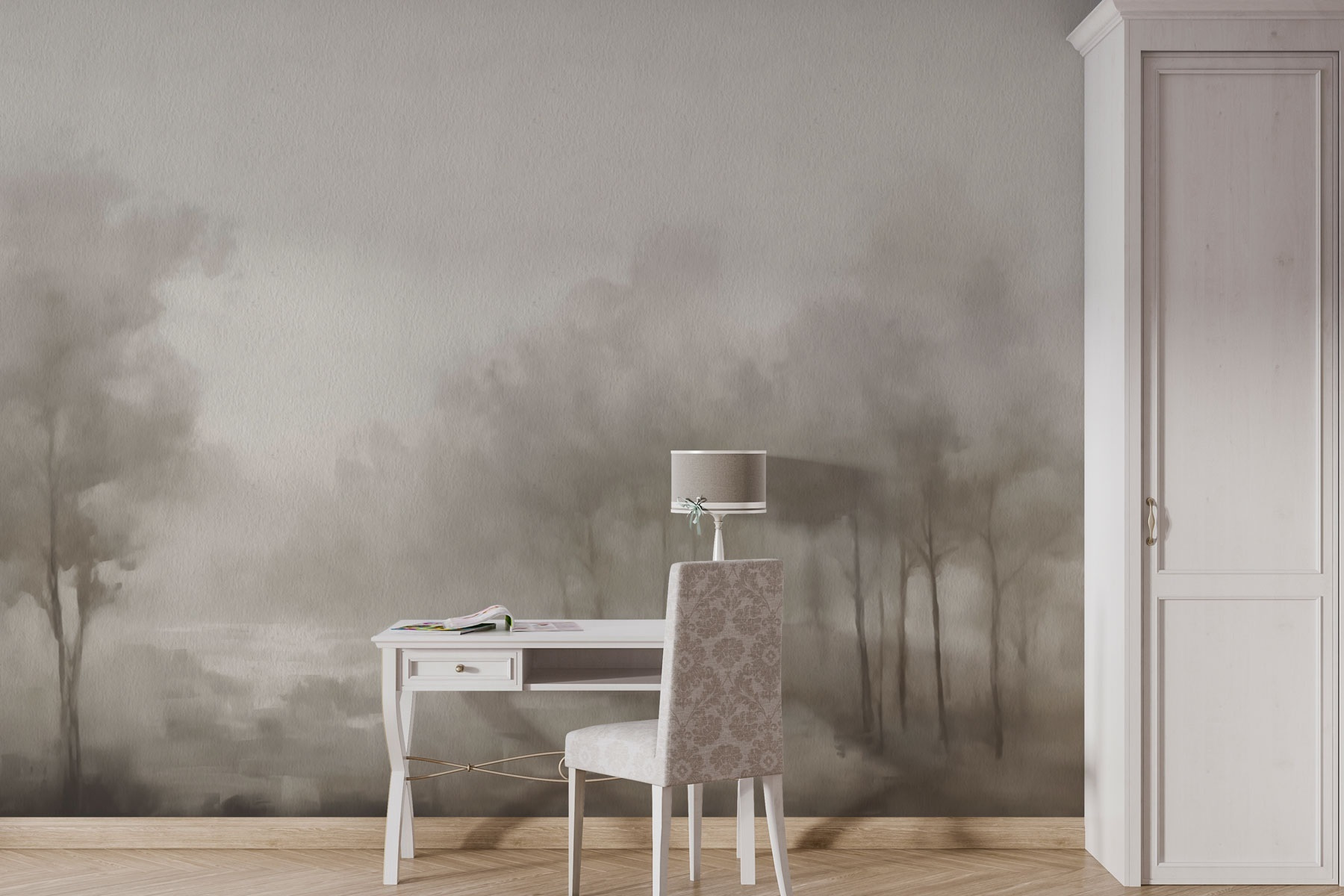 Transformez votre espace en un lieu de rêve avec cette peinture murale “Paysage brumeux avec arbres”. Imaginez que vous vous réveillez avec une douce brume roulant entre des arbres sereins, comme une douce étreinte de la nature. Parfaite pour un salon ou une chambre à coucher, cette peinture apporte une atmosphère apaisante qui donne envie de se blottir dans un livre (et peut-être une tasse de thé) pendant des heures. Les tons sourds se fondent sans effort, invitant à la chaleur sans pour autant attirer l’attention. Pensez-y : des après-midi passés à rêvasser tout en profitant de l’ambiance calme créée par cette peinture murale. C’est un petit coin de tranquillité chez vous, qui vous invite à vous détendre et à vous relaxer avec style.