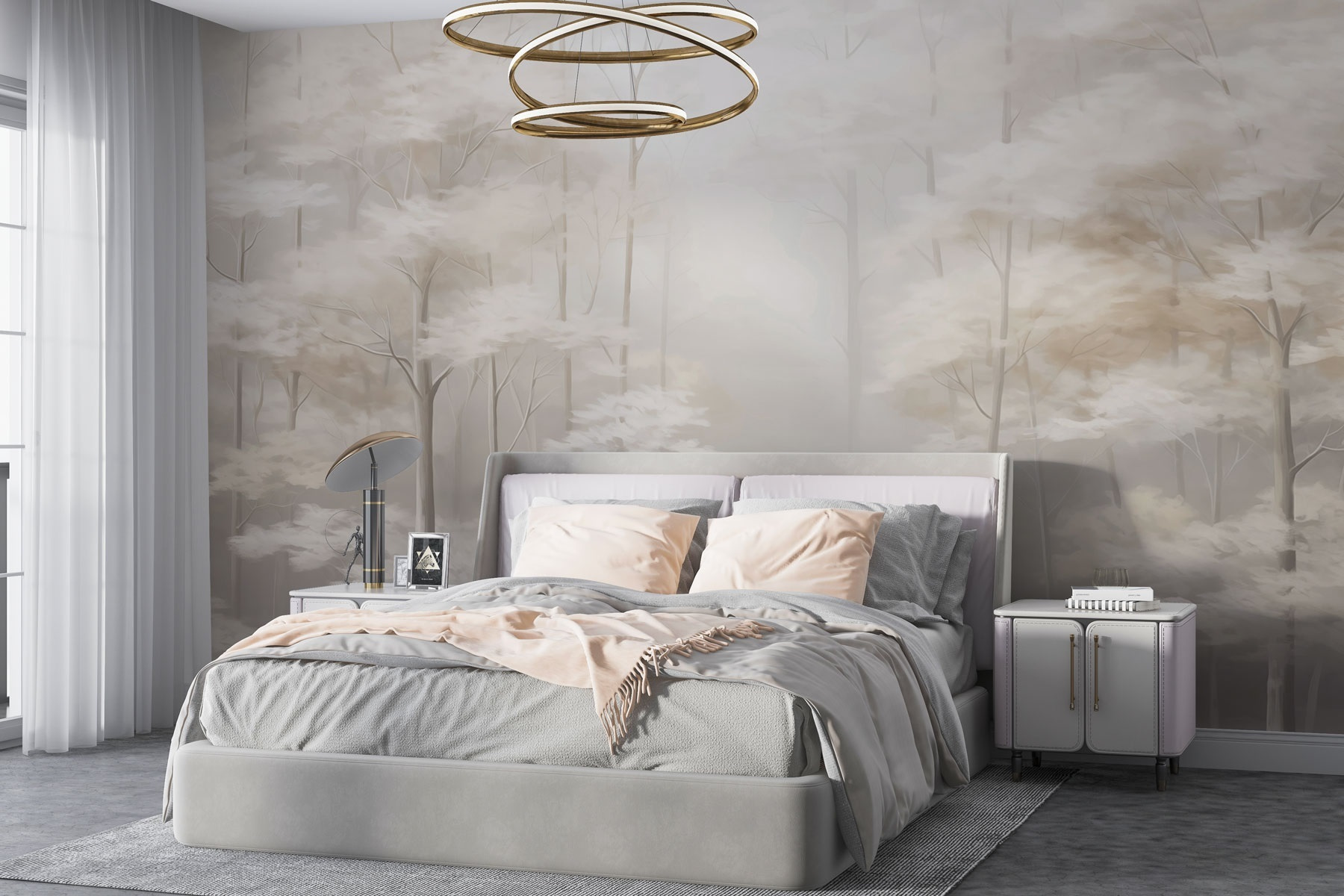 Imaginez que vous pénétrez dans une forêt brumeuse et rêveuse, où les tons doux et les arbres délicats vous invitent à vous promener. Cette peinture murale est comme une bouffée d’air frais pour votre espace – un mélange parfait entre la tranquillité de la nature et l’art moderne. Imaginez des soirées douillettes passées dans une pièce transformée par cette toile de fond sereine. Ce n’est pas seulement une peinture murale, c’est une ambiance. Que vous sirotiez un café ou que vous travailliez sur votre dernier projet, cette scène apaisante promet de calmer l’esprit et de susciter l’inspiration. De plus, c’est un excellent sujet de conversation pour tous vos invités. Qui n’aimerait pas discuter de la beauté de la nature dans le confort de sa maison ?