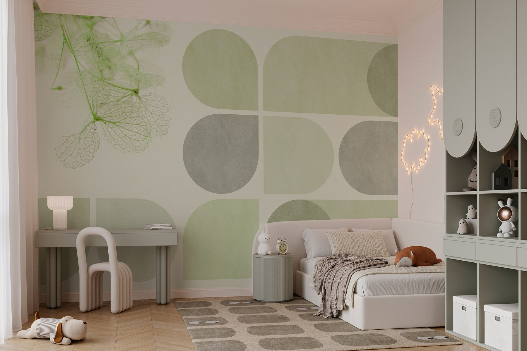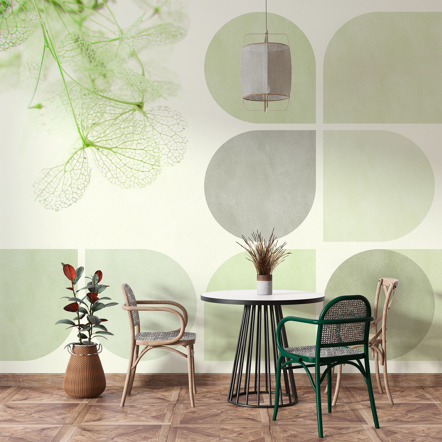 Transformer une pièce, c’est comme lui donner une nouvelle tenue, n’est-ce pas ? Cette peinture murale apporte un mélange rafraîchissant de verts doux et de motifs délicats, transformant n’importe quel espace en une retraite confortable. Imaginez que vous vous réveillez avec des teintes douces qui chuchotent la paix, tandis qu’une danse géométrique ludique maintient l’intérêt. Parfait pour ce mur peu pratique qui semble accumuler les moutons de poussière, il ajoute sans effort du caractère sans attirer l’attention. Vos amis se demanderont d’où vient cette ambiance paisible, et peut-être même si vous avez trouvé le maître zen qui sommeille en vous ! Qui aurait cru qu’une peinture murale pouvait avoir autant de charme ?