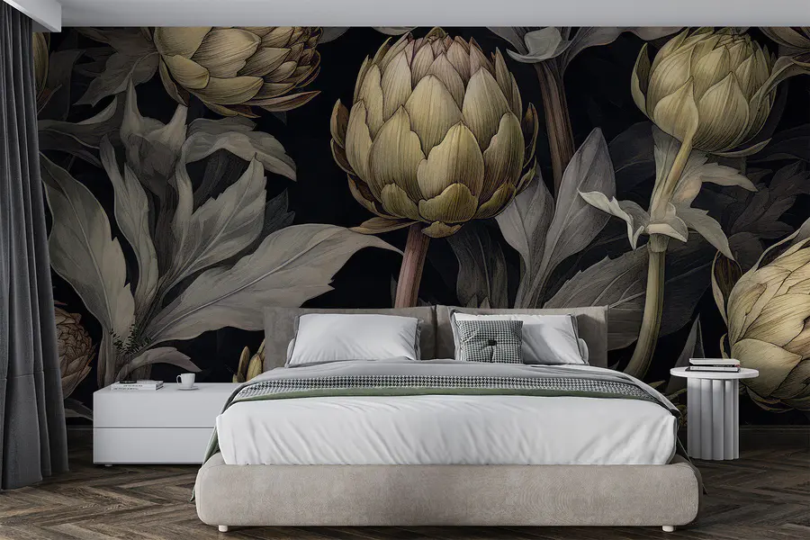 Transformez n’importe quelle pièce en un havre de paix chic grâce à cette peinture murale représentant des artichauts et des feuilles sur un fond noir saisissant. C’est comme si vous apportiez un morceau de jardin à l’intérieur, sans l’arrosoir et les insectes nuisibles. Imaginez que vous sirotiez un café en regardant ces artichauts dorés et complexes qui se détachent joliment sur la toile sombre. C’est un sujet de conversation à coup sûr – vos invités ne manqueront pas d’y regarder à deux fois. Parfaite pour un coin douillet ou un bureau qui a besoin d’une touche d’élégance, cette peinture murale rehausse n’importe quel mur grâce à son charme unique. C’est une petite œuvre d’art qui raconte une histoire – peut-être même l’histoire d’un dîner où les artichauts étaient à l’honneur !