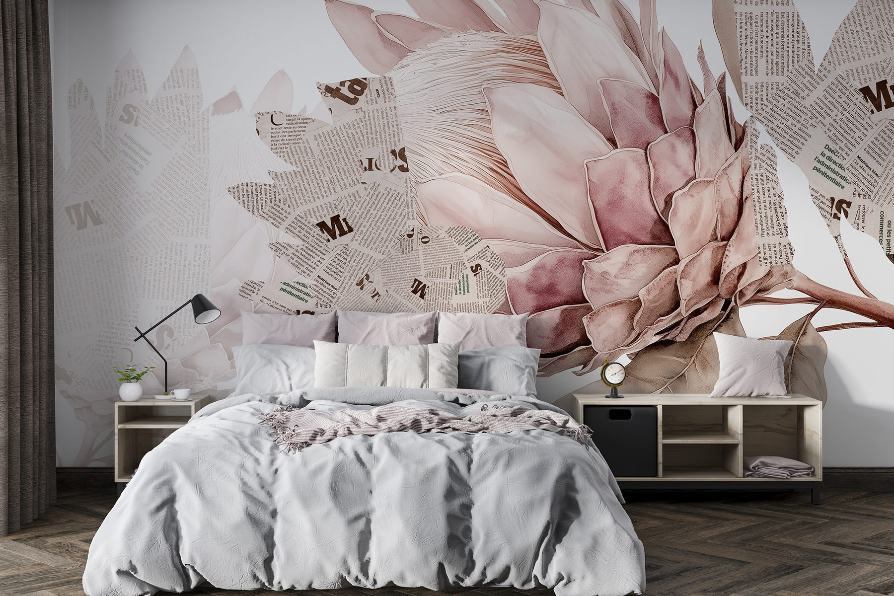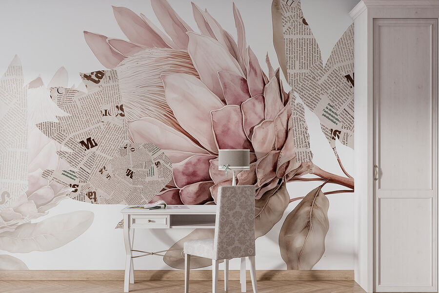 Apportez une touche de nature à l’intérieur avec cette peinture murale enchanteresse représentant ces charmantes fleurs entrelacées avec des éléments de journaux. C’est comme un mélange de garden party et de galerie d’art, le tout sur votre mur. Imaginez que vous sirotiez un café en admirant la façon dont les doux pétales dansent avec le texte en gras, suscitant des conversations et peut-être même un peu de rêverie. Cette peinture murale peut transformer n’importe quelle pièce en un coin confortable, vivant et élégant. Il murmure à l’âme, invitant à la chaleur et à un soupçon de fantaisie. Parfaite pour les espaces qui ont besoin d’une touche de personnalité et de charme, elle nous rappelle que la beauté peut se trouver dans des endroits inattendus.