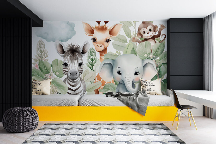 Transformez n’importe quel espace en une retraite animée dans la jungle avec cette charmante peinture murale d’animaux espiègles se faufilant à travers des feuilles luxuriantes. Imaginez la joie sur le visage d’un enfant lorsqu’il aperçoit le zèbre amical, la girafe curieuse et le singe effronté – parfait pour les crèches ou les salles de jeux. Cette peinture murale invite à la chaleur et à la fantaisie, en faisant entrer l’extérieur à l’intérieur. C’est comme si les petites créatures de la nature s’amusaient sur votre mur ! Facile à appliquer et suffisamment lumineuse pour susciter des conversations, cette peinture stimule instantanément l’humeur. Qui ne voudrait pas se réveiller avec cette scène joyeuse ? Pensez aux histoires qui se dérouleront ici.