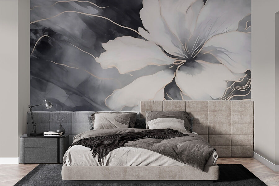 Papier peint Fleur blanche sur fond noir et blanc (UGS: w03684)