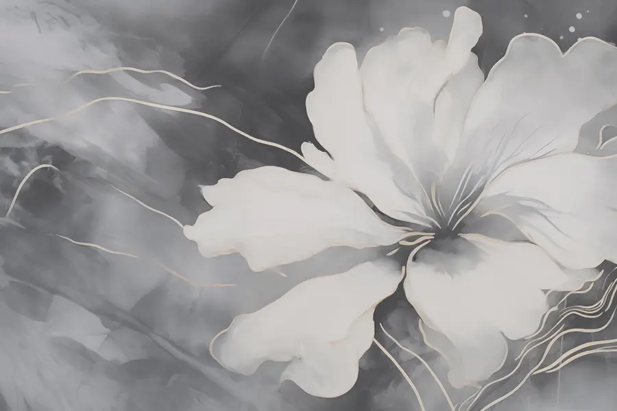 Papier peint Fleur blanche sur fond noir et blanc (UGS: w03684)