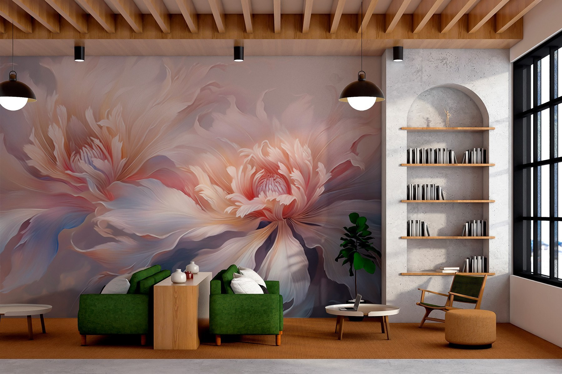 Imaginez que vous pénétrez dans un monde serein rempli de fleurs délicates, où les teintes douces flirtent avec les murs. Cette peinture murale apporte un doux murmure de la nature à l’intérieur. Chaque pétale semble danser, invitant à des vibrations calmes qui peuvent égayer même les coins les plus ternes.