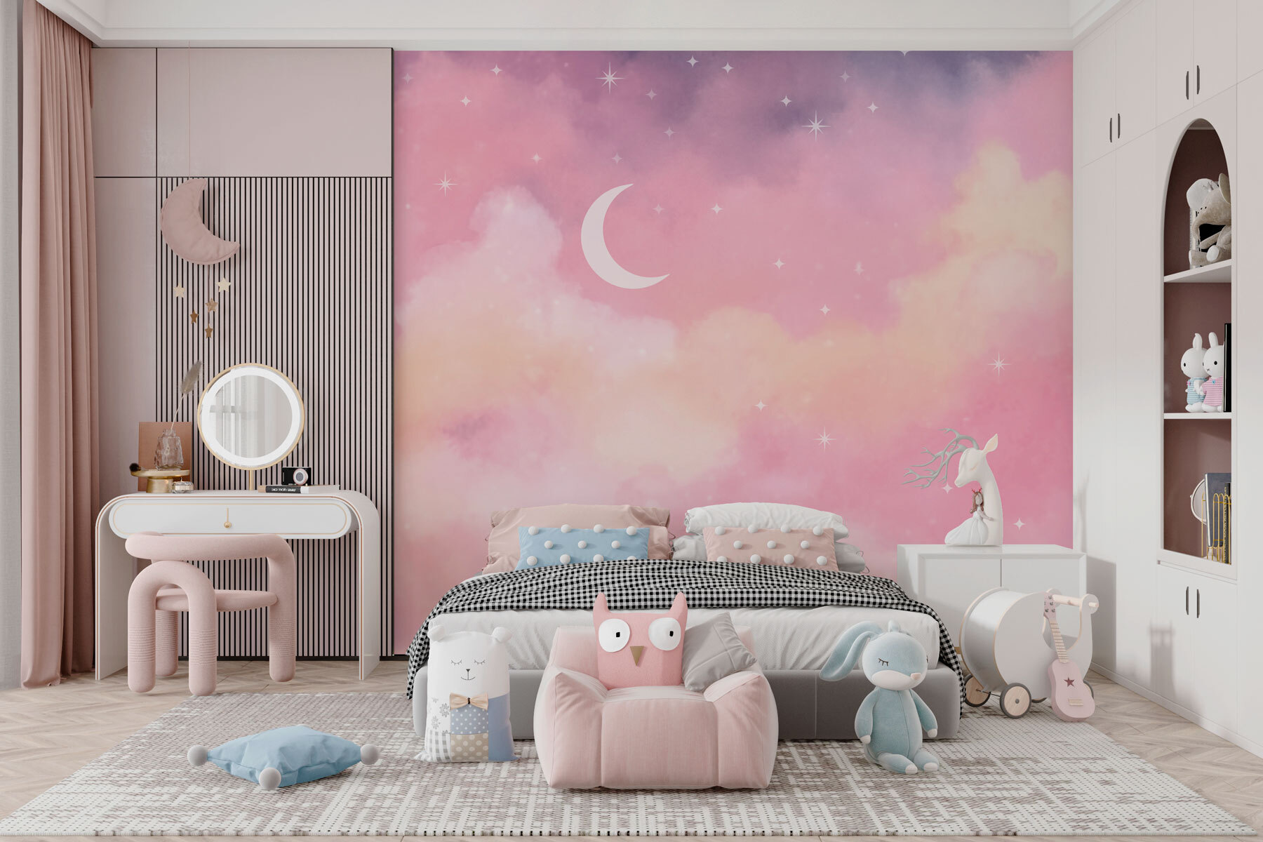 Transformez la chambre d’un enfant en un ciel nocturne de rêve avec cette peinture murale enchanteresse composée de teintes roses douces, d’étoiles délicates et d’un doux croissant de lune. Imaginez des histoires à dormir debout sous un plafond étoilé, où chaque regard inspire l’émerveillement. Parfaite pour susciter des rêves d’aventure et d’exploration, elle crée une ambiance sereine, transformant n’importe quel espace en une retraite douillette. C’est comme si vous apportiez un petit morceau de l’univers à l’intérieur, idéal pour s’endormir ou se blottir avec un bon livre. Imaginez les yeux endormis qui s’illuminent à la vue de cette scène magique !
