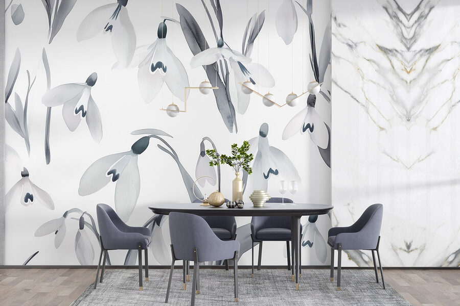 Transformez n’importe quelle pièce avec le charme des “Muraux Fleurs blanches avec feuilles grises”. Cette peinture murale apporte une ambiance douce et naturelle, rappelant un jardin serein par une journée de printemps, sans les éternuements dus aux allergies. Elle est parfaite pour les moments où vous avez envie de vous détendre avec une tasse de thé et de vous perdre dans les couches de fleurs délicates. Imaginez que vous vous réveillez dans ce décor de rêve – c’est comme si vous aviez un petit coin de nature chez vous. Les teintes douces créent une toile de fond apaisante, donnant aux espaces une impression de légèreté et d’ouverture. Que ce soit dans un coin douillet ou dans un salon spacieux, cette peinture murale s’impose sans effort, invitant tranquillement à la chaleur et à la sérénité. Qui pourrait dire non à des fleurs qui se reflètent sur le mur ?