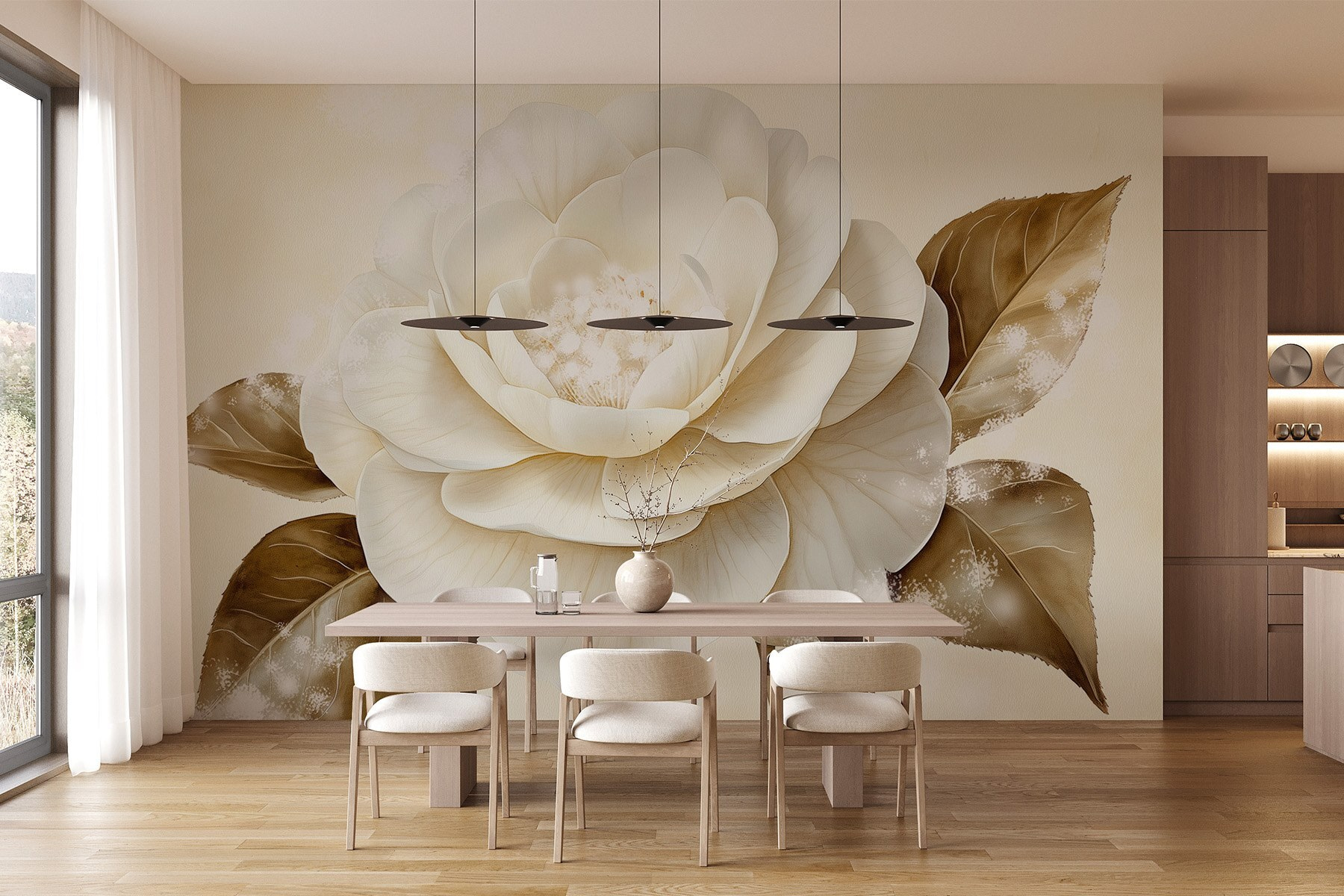 Transformez votre espace avec cette superbe peinture murale représentant une magnifique fleur blanche associée à des feuilles d’un brun chaud. Imaginez que vous entrez dans une pièce où cette œuvre d’art vous accueille, la remplissant d’un sentiment de calme et du charme de la nature. Les teintes douces et les détails délicats attirent le regard, ce qui en fait l’œuvre idéale pour un salon confortable ou une chambre à coucher sereine. Les visiteurs peuvent s’arrêter pour admirer sa beauté, voire avoir envie de se détendre avec un bon livre à proximité. C’est comme si vous apportiez un peu de l’extérieur à l’intérieur, le pollen en moins. Un changement simple qui suscite la joie, n’est-ce pas ?