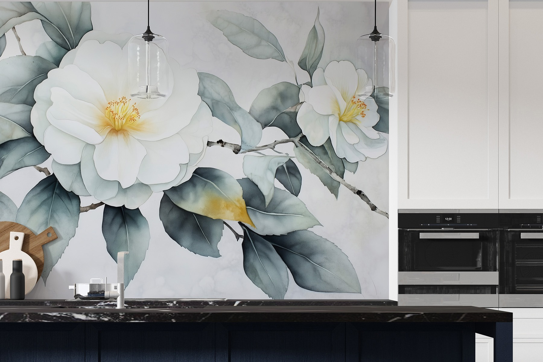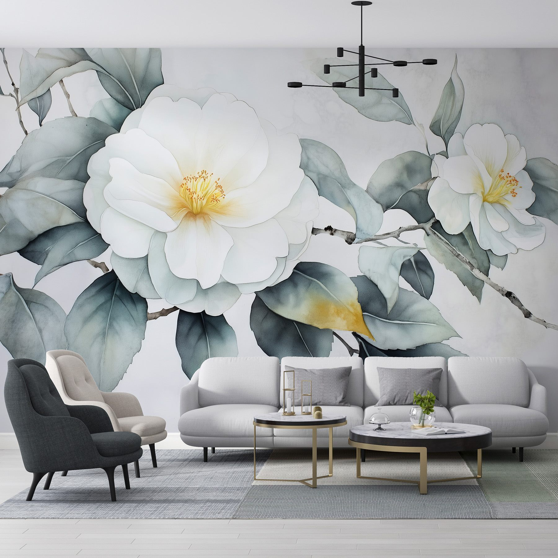 Transformez un mur terne en une échappée sereine grâce à cette jolie peinture murale de fleurs blanches avec des feuilles vertes douces. C’est comme si vous apportiez une bouffée d’air frais à l’intérieur sans avoir à arroser quoi que ce soit. Parfaite pour les jours où un peu de verdure peut remonter le moral, cette peinture murale crée une toile de fond apaisante pour n’importe quelle pièce. Imaginez que vous sirotiez votre café du matin en contemplant cette beauté – c’est pratiquement une mini-vacance. De plus, cela permet d’engager la conversation, surtout lorsque des invités vous demandent ce qu’est votre “jardin secret”. Qui a besoin d’une transformation florale complète quand cette peinture murale fait l’affaire ?