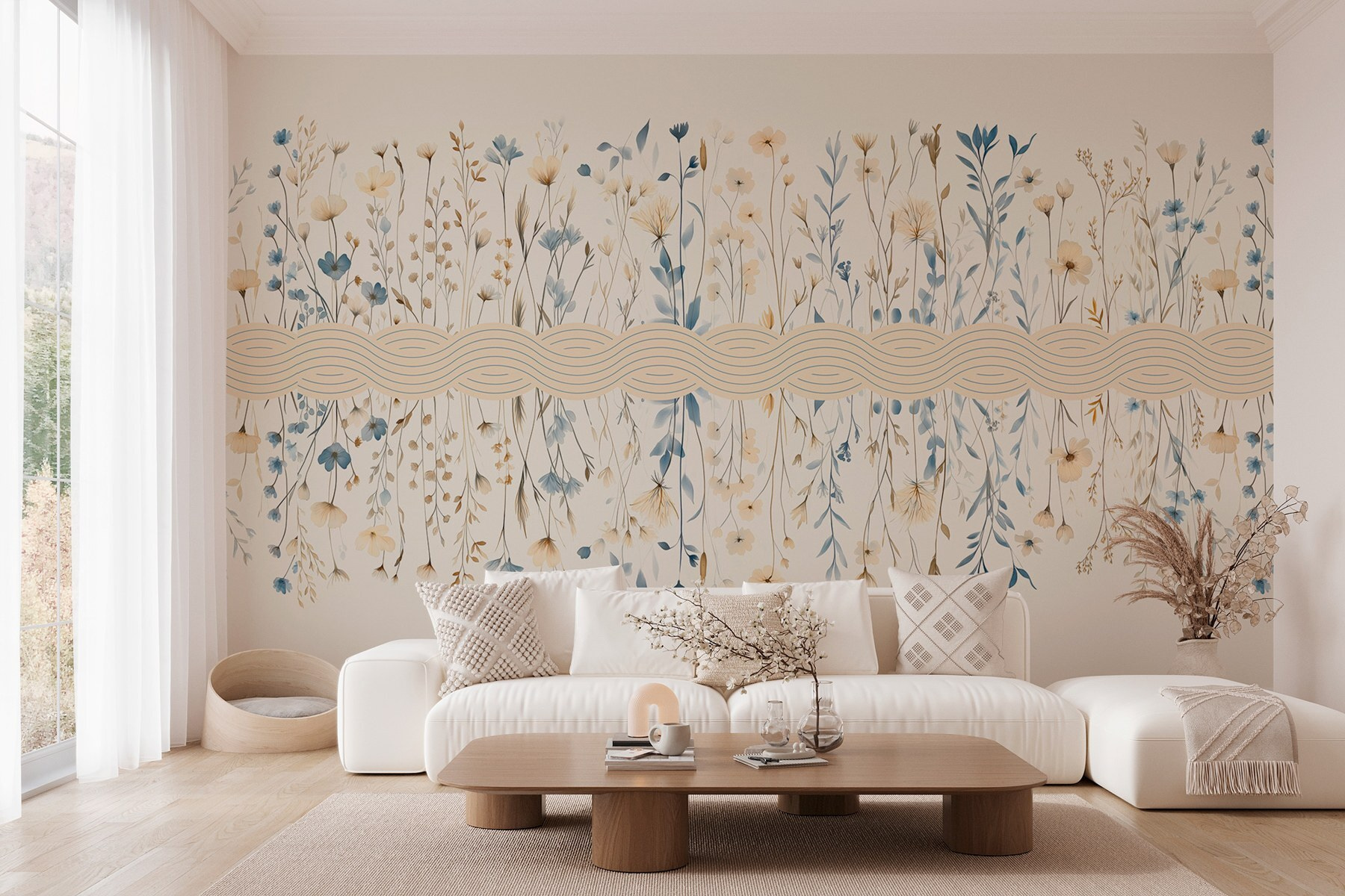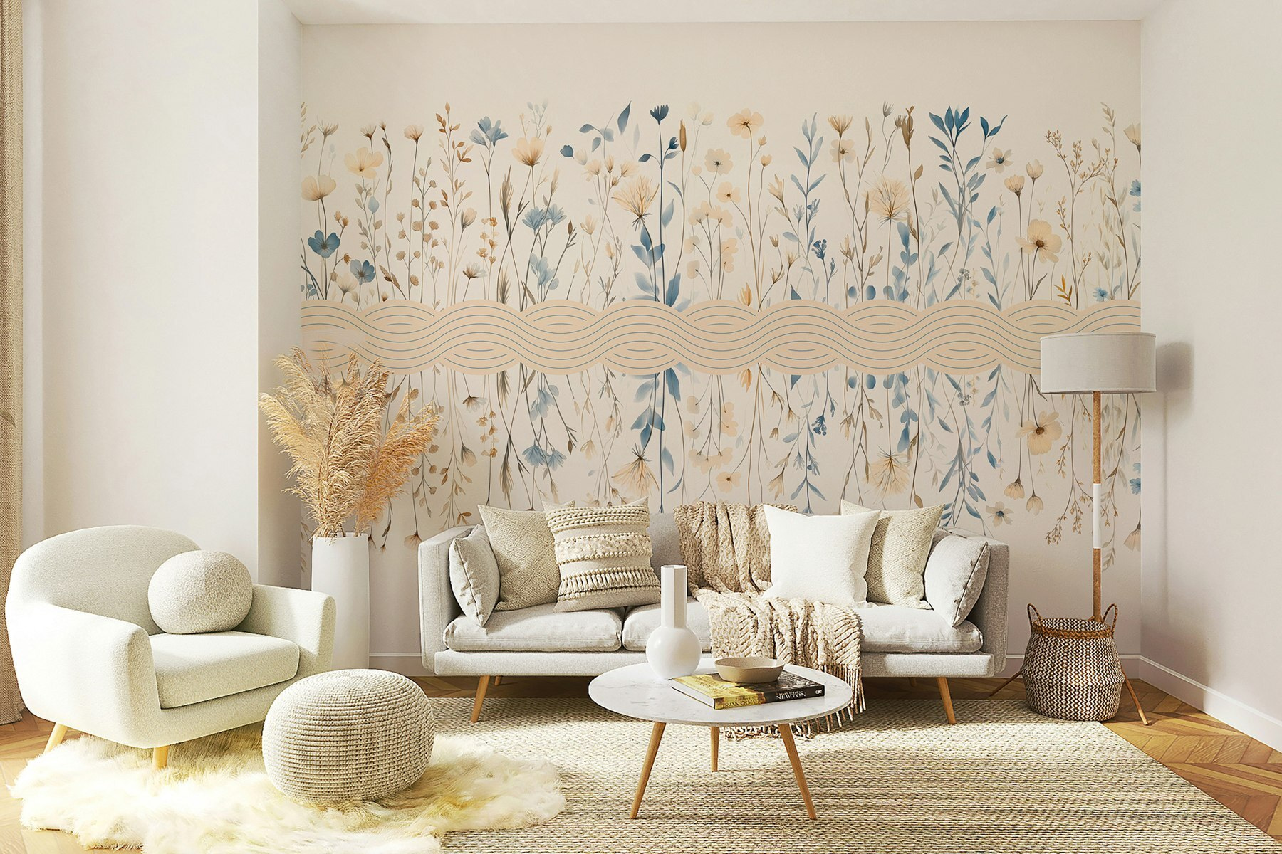 Transformez n’importe quel espace en un lieu d’évasion sereine grâce à cette ravissante peinture murale présentant un motif floral dans des bleus charmants et des blancs doux. Imaginez que vous entrez dans une pièce où de délicates fleurs se balancent doucement, apportant des bouffées de calme et de joie. La palette de couleurs apaisantes évoque ce sentiment de détente, comme une journée de brise passée à se promener dans un jardin tranquille. Parfaite pour un salon confortable ou une chambre à coucher paisible, cette peinture murale apporte charme et fantaisie. Il est temps d’abandonner les murs sobres et d’adopter un peu de magie florale – vos murs méritent d’être améliorés. De plus, c’est comme avoir un jardin qui ne se fane jamais !
