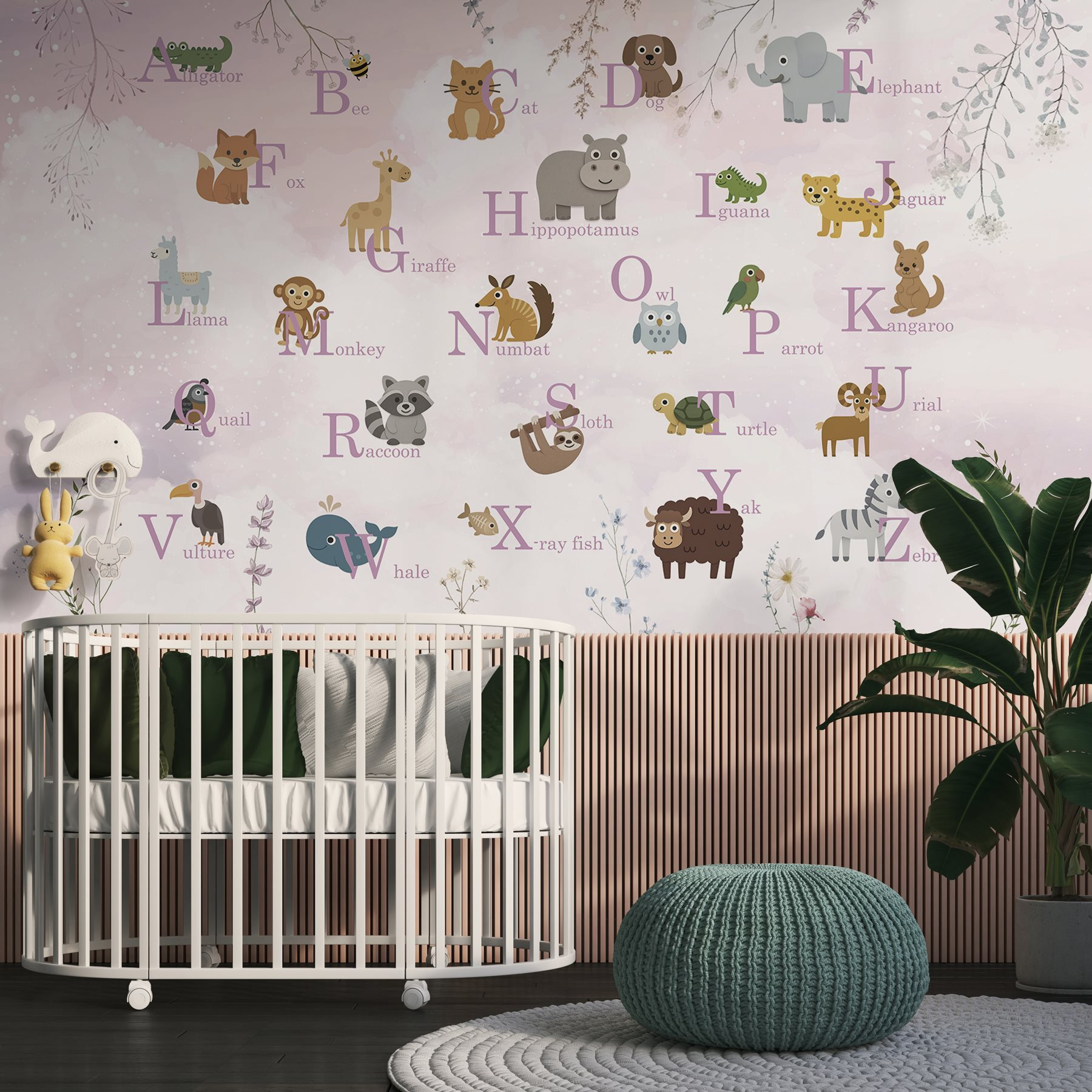 Entrez dans un monde fantaisiste avec cette ravissante peinture murale représentant un défilé de charmants animaux et de lettres. Imaginez les enfants qui s’amusent à pointer du doigt chaque ami à fourrure tout en apprenant l’ABC. Le fond pastel doux permet de l’intégrer facilement dans n’importe quelle pièce, qu’il s’agisse d’une chambre d’enfant, d’une salle de jeux ou même d’un coin de lecture confortable. C’est comme un doux câlin pour vos murs, qui suscite la curiosité et la joie. De plus, qui n’aimerait pas qu’un paresseux ou un lama veille sur lui ? Cette peinture murale ajoute juste la bonne touche d’amusement et de chaleur, parfaite pour nourrir l’imagination des jeunes et rendre l’espace accueillant.
