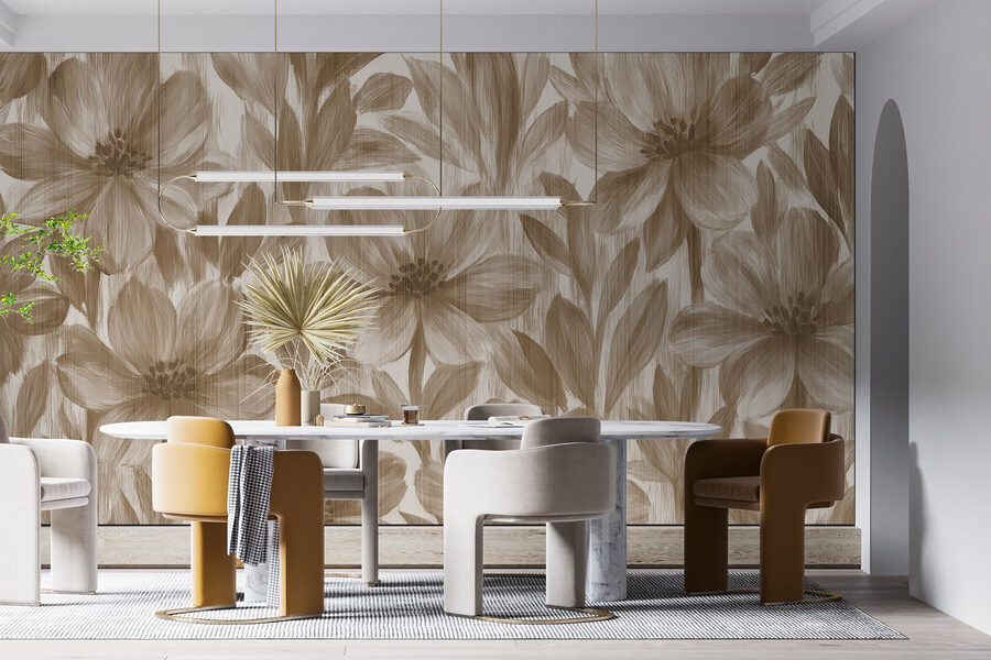 Transformez n’importe quelle pièce en une retraite douillette grâce à ces superbes peintures murales aux doux motifs floraux dans des tons terreux. Imaginez que vous entrez dans un espace où de douces fleurs dansent sur les murs, invitant à un sentiment de calme et de chaleur. Parfait pour un salon, une chambre à coucher ou même un petit coin lecture où règne la paix. C’est comme une bouffée d’air frais ou une étreinte chaleureuse par temps froid. Vos amis s’attarderont peut-être pour discuter d’art et de décoration, tandis que vous vous prélasserez dans cette ambiance sereine. Les amoureux de la nature adoreront la façon dont ces motifs floraux font entrer l’extérieur, créant une atmosphère à la fois vibrante et apaisante. Allez-y, laissez ces magnifiques fleurs s’épanouir dans votre maison.