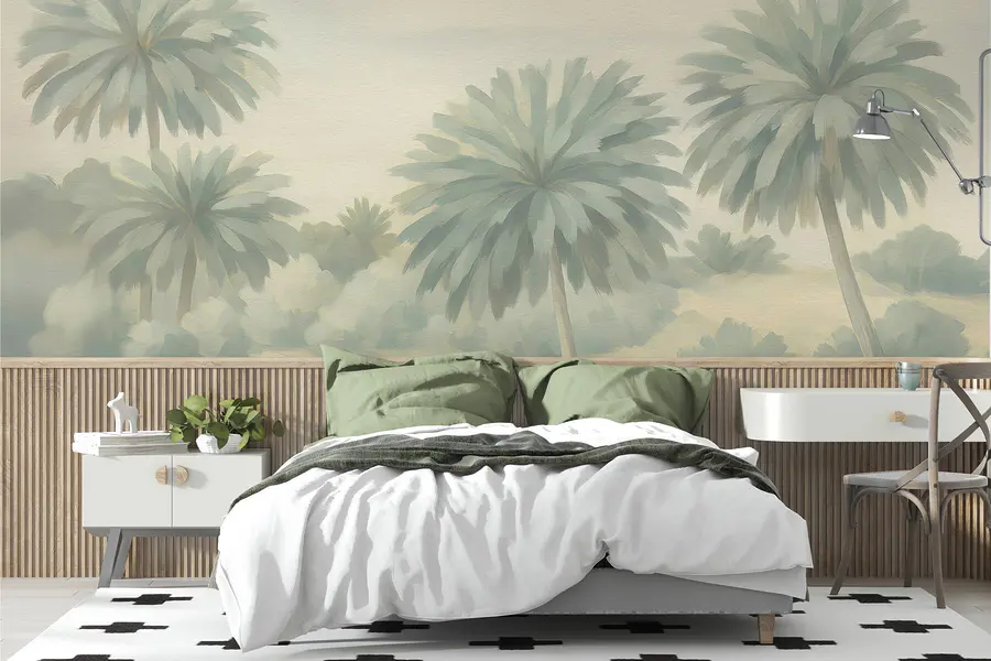 Transformez n’importe quelle pièce en oasis tropicale grâce à ce superbe palmier mural. C’est comme si vous apportiez une tranche de paradis à l’intérieur, sans risque de coup de soleil. Imaginez : vous sirotez votre café du matin en contemplant ces doux géants qui se balancent au gré d’une douce brise. Les tons sourds créent une toile de fond sereine, parfaite pour se détendre. Idéale pour les salons, les chambres à coucher ou même les coins lecture, elle ajoute une touche de nature sans l’entretien de vraies plantes. Cette peinture murale invite à rêver de plages de sable et de brises chaudes. Qui n’aimerait pas cela ?