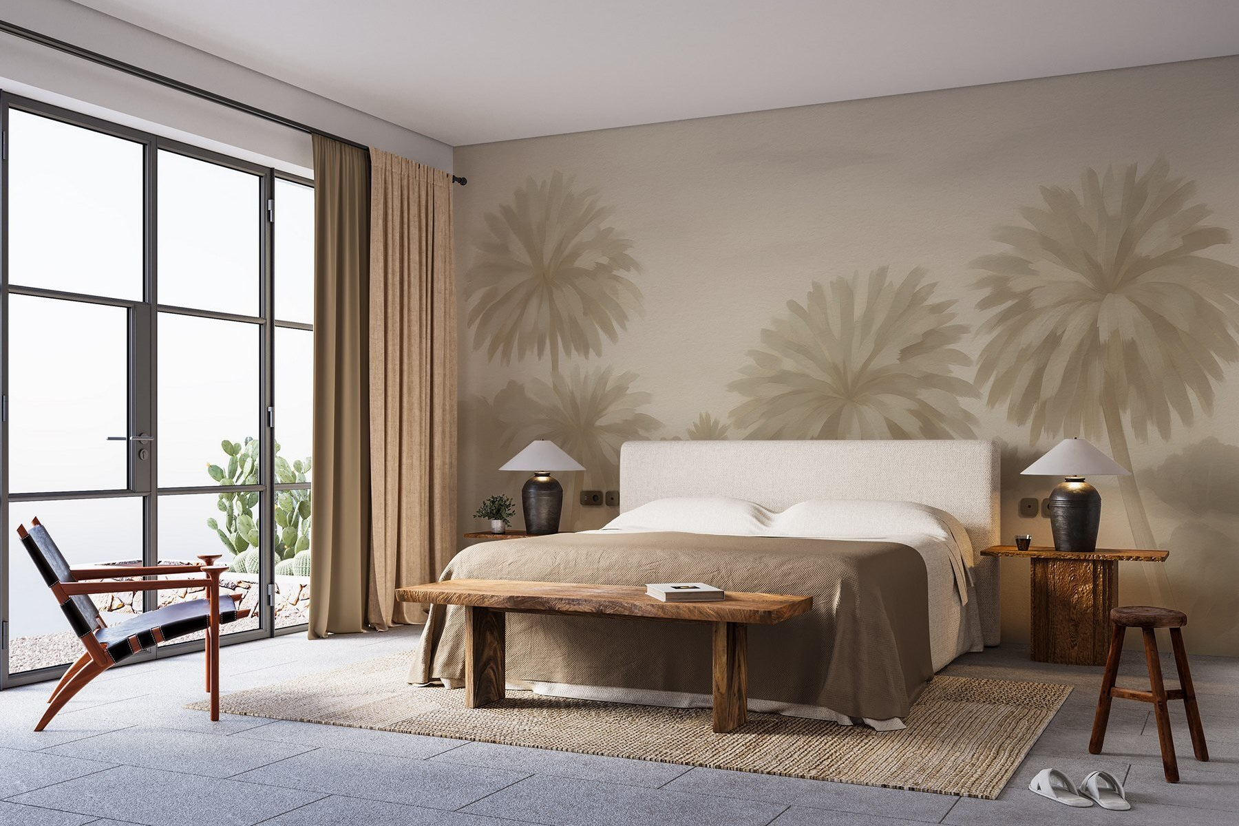 Apportez une tranche de paradis dans votre espace avec le “Groupe de palmiers en peinture murale”. Imaginez-vous en train de vous prélasser par un après-midi de farniente, les teintes douces et apaisantes des feuilles de palmier se balançant doucement dans votre salon. Cette peinture murale ne se contente pas de décorer, elle invite à rêver de plages ensoleillées et de brise, rendant les murs ternes vivants et pleins de chaleur. Elle est parfaite pour s’insérer dans un coin douillet ou pour égayer un espace commun. Les détails subtils donnent envie de les toucher. Ce n’est pas seulement un revêtement mural, c’est un rappel qu’il y a toujours un endroit tropical qui vous appelle. Qui n’en voudrait pas ?