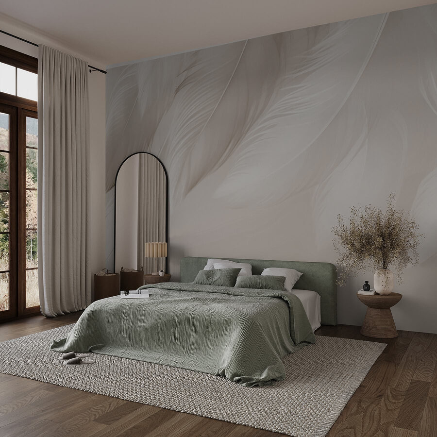 Imaginez que vous entrez dans une pièce où de douces plumes semblent flotter gracieusement le long des murs. Cette peinture murale, “Des plumes douces tombent en cascade”, apporte vraiment un sentiment de calme et de sérénité à n’importe quel espace. C’est comme un doux rappel à prendre une profonde respiration et à laisser tomber le chaos de la journée. Les couleurs subtiles créent une atmosphère douillette, parfaite pour la détente ou un espace de travail créatif. Vos amis s’arrêteront peut-être pour l’admirer, et vous demanderont peut-être même si vous êtes en train de canaliser une sorte de zénitude influencée par les plumes. Ce n’est pas seulement un décor, c’est un petit coin de tranquillité qui invite à la chaleur et à la conversation. Parfait pour ceux qui apprécient les touches uniques dans leur maison !