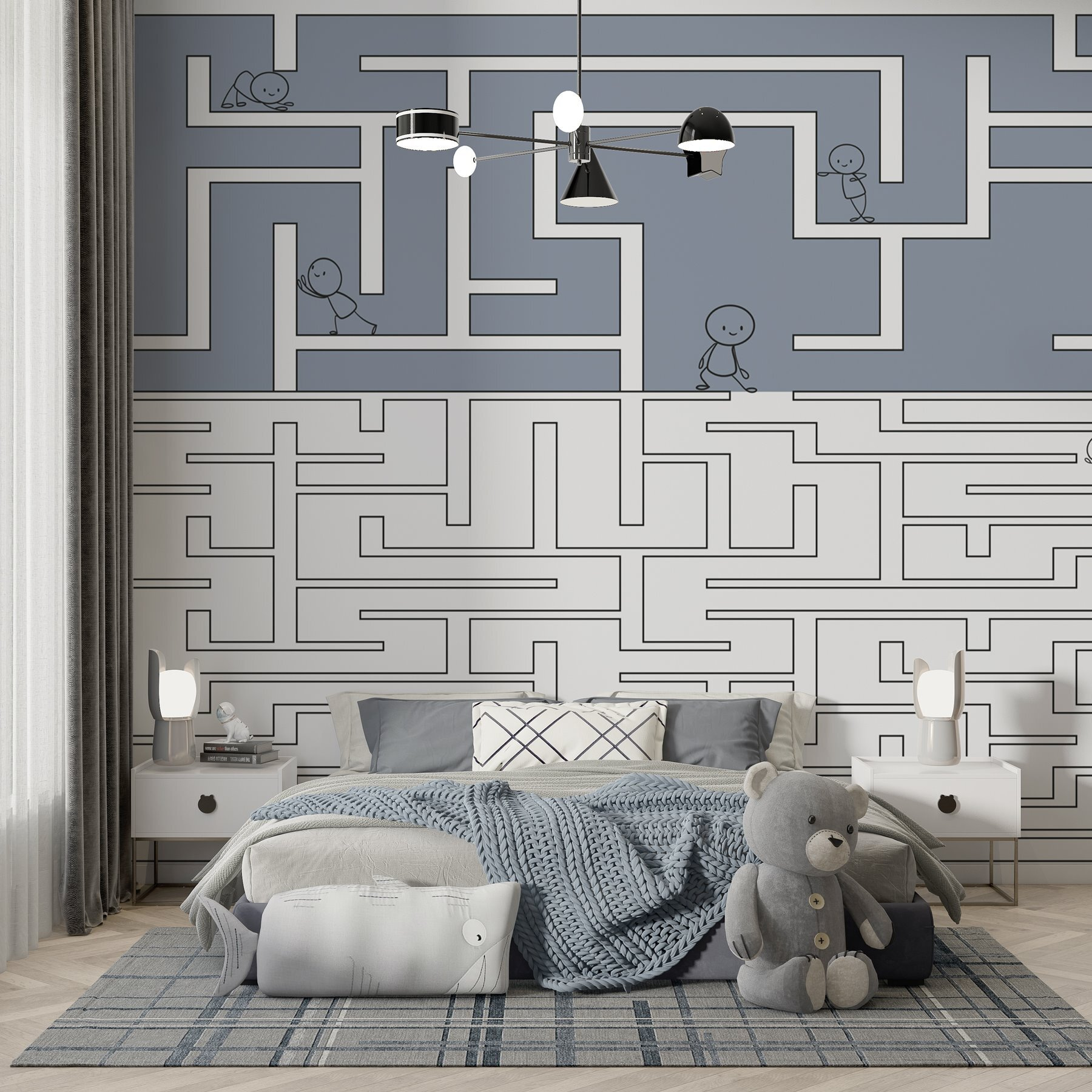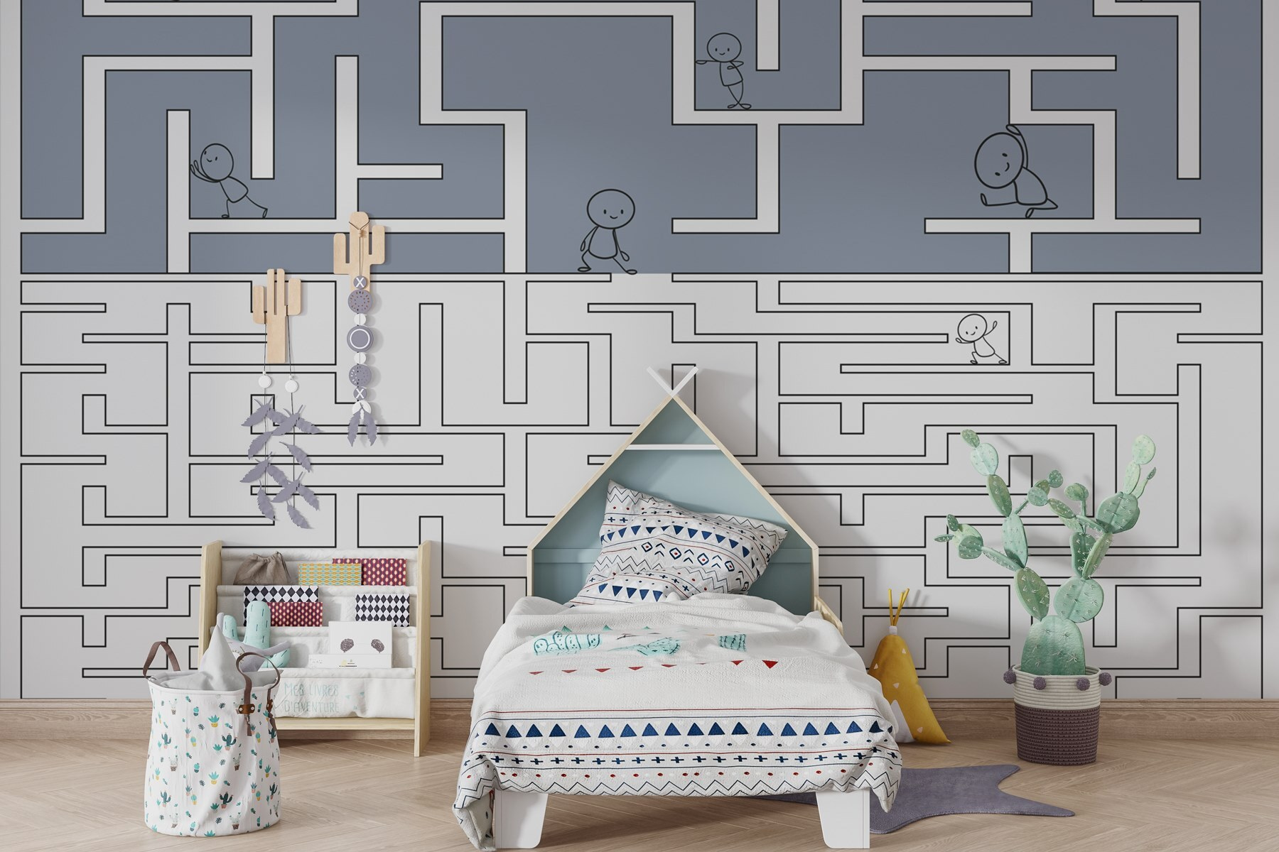Transformez votre espace avec le charme fantaisiste de cette peinture murale, qui représente un charmant labyrinthe et des personnages sympathiques qui en parcourent les méandres. Imaginez les enfants riant en explorant leur propre aventure sur les murs ! C’est comme si vous donniez vie à un livre d’histoires, en stimulant l’imagination pendant les heures de jeu ou les après-midi de lecture. Les couleurs douces créent une ambiance apaisante, parfaite pour les chambres ou les salles de jeux. De plus, c’est un excellent moyen d’engager la conversation avec les visiteurs qui aimeront peut-être essayer de résoudre le labyrinthe eux-mêmes. Qui aurait cru que la décoration pouvait être aussi amusante ?