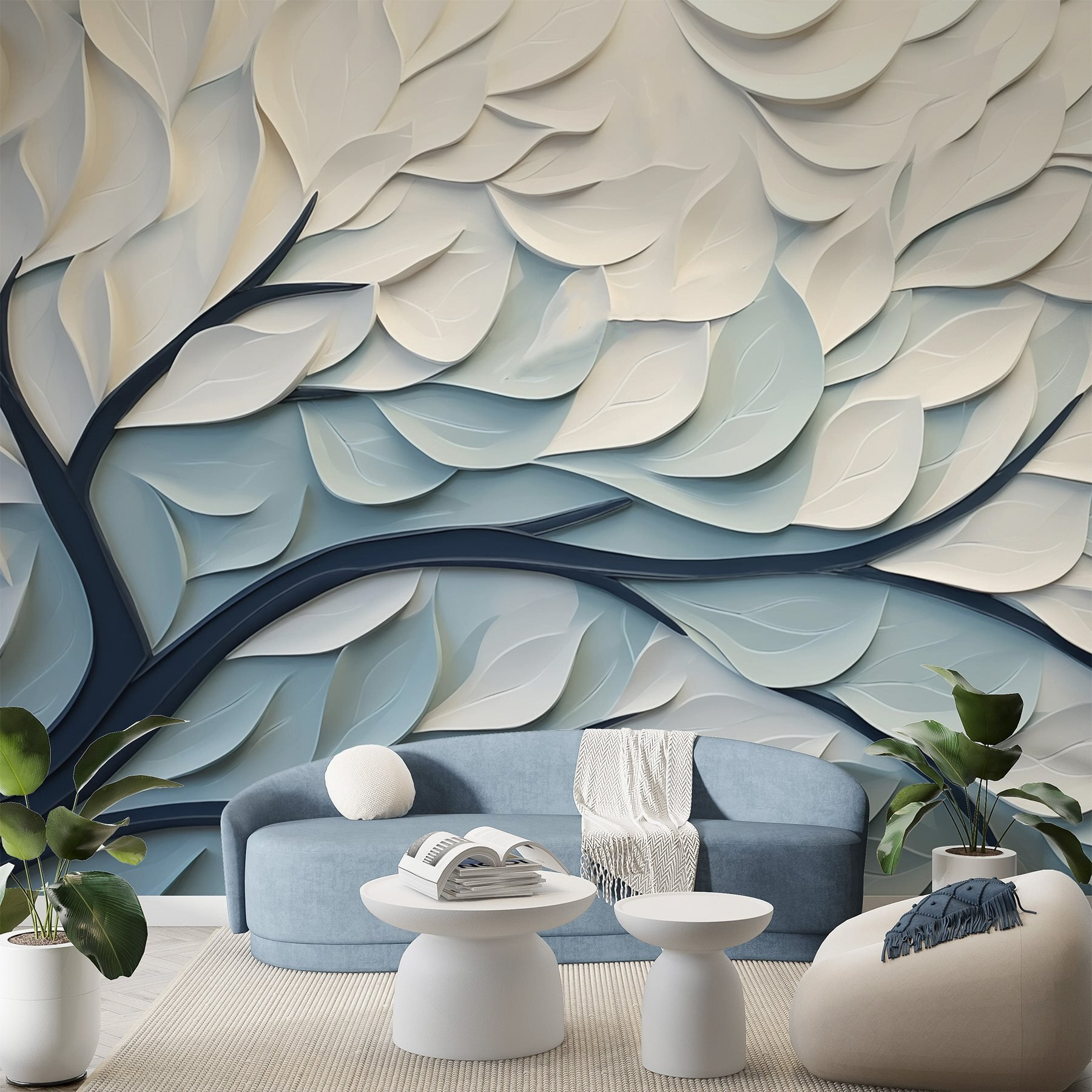 Transformez n’importe quel espace en une oasis de calme grâce à cette superbe peinture murale de feuilles blanches et bleues. Imaginez que vous entrez dans une pièce où les branches s’étendent sur le mur, apportant un éclat de nature à l’intérieur. Les couleurs douces sont comme une brise légère lors d’une journée chaude, évoquant la tranquillité sans attirer l’attention. Parfait pour les salons, les chambres à coucher ou même un coin confortable où vous sirotez votre café du matin. C’est comme si vous aviez un morceau de l’extérieur à portée de main – aucune compétence en jardinage n’est requise. De plus, qui n’apprécierait pas une jolie toile de fond pour ses soirées dansantes spontanées ?