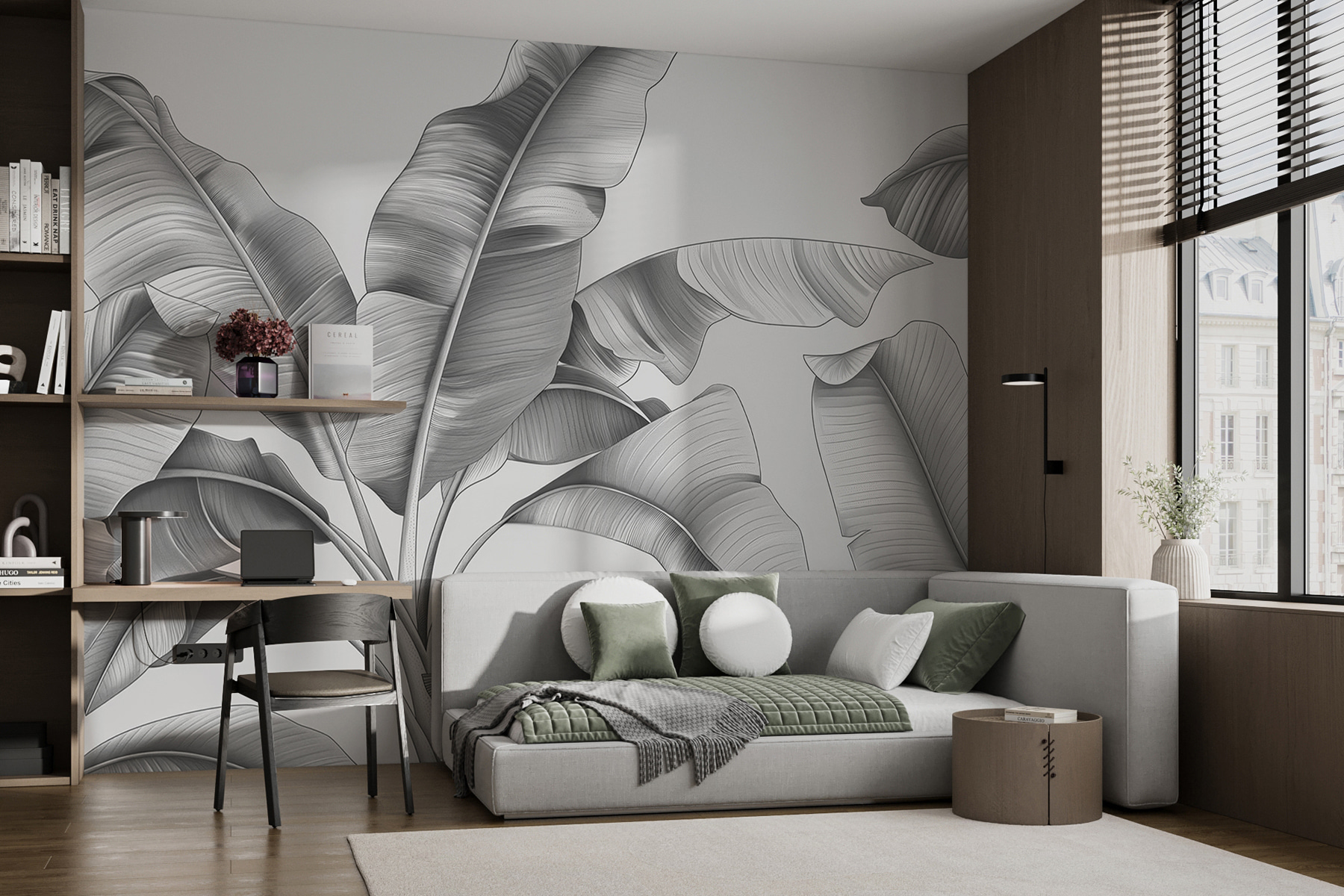L’ambiance cool des niveaux de gris le rend polyvalent pour presque tous les styles de pièces, d’un salon moderne à une chambre à coucher sereine. De plus, l’effet 3D ajoute tellement de profondeur que vous vous surprendrez à vouloir toucher les feuilles ! Sérieusement, il y a quelque chose de tellement apaisant à être entouré de feuillage – sans l’arrosage et les insectes, bien sûr.