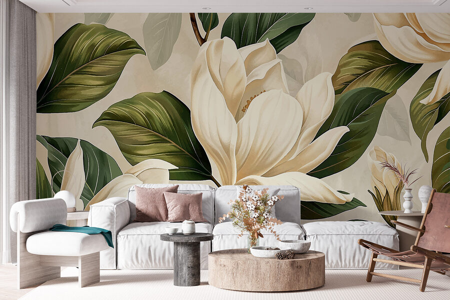 Vous cherchez à donner un coup de jeune à vos murs ? Le “Papier peint w07901” pourrait bien être votre nouveau meilleur ami ! Imaginez ceci : Un mélange étonnant de verdure luxuriante et de fleurs crémeuses qui ne demandent qu’à être rafraîchies et vivifiées. Imaginez que vous ayez un morceau de la beauté de la nature dans votre salon – ou peut-être dans votre chambre à coucher, pour une ambiance douillette et rêveuse. L’effet 3D donne l’impression que les fleurs vous murmurent des mots doux.