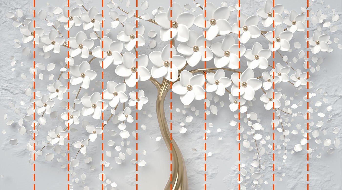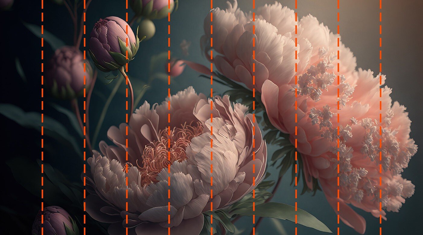 Votre papier peint sera préparé selon les dimensions que vous avez indiquées lors du processus de commande. La toile sera divisée en sections pratiques, chacune d’une largeur maximale de 50 cm.