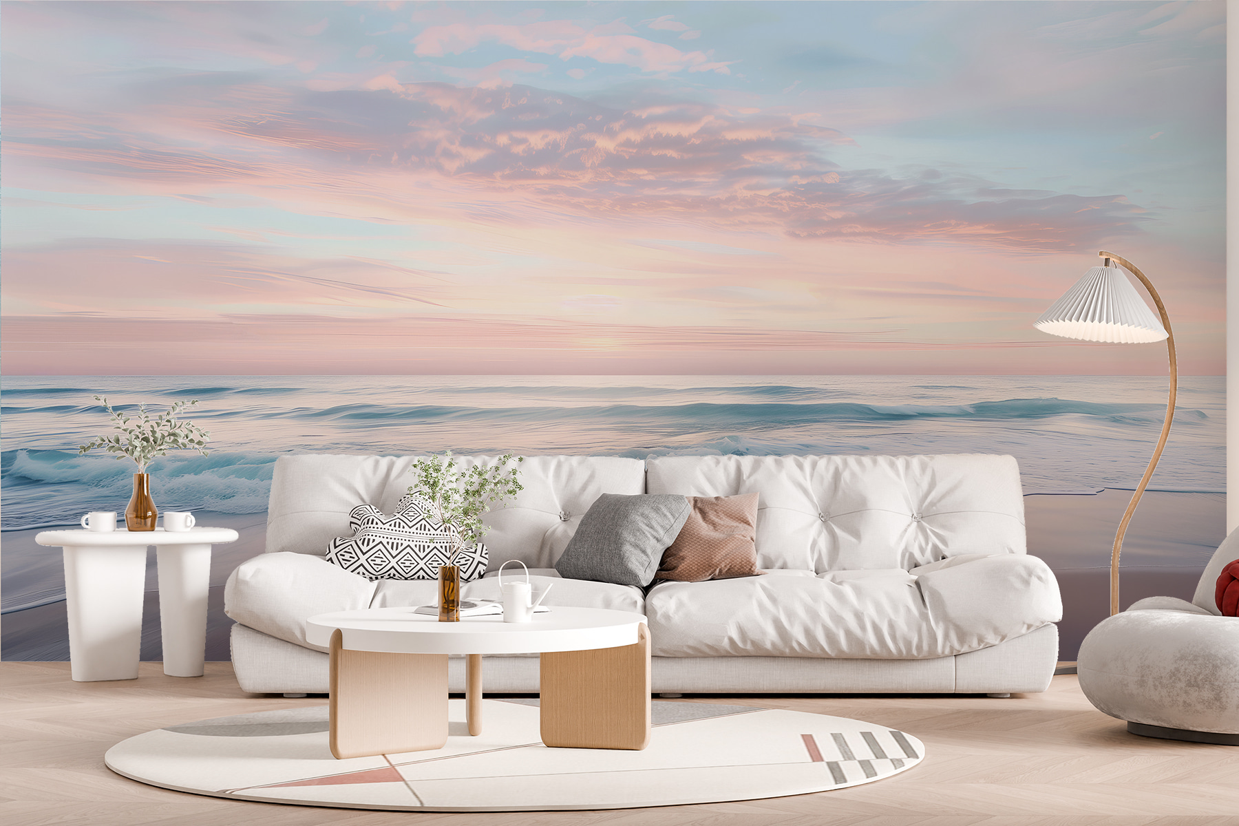 1 avis pour Papier peint Plage avec des vagues et un ciel rose