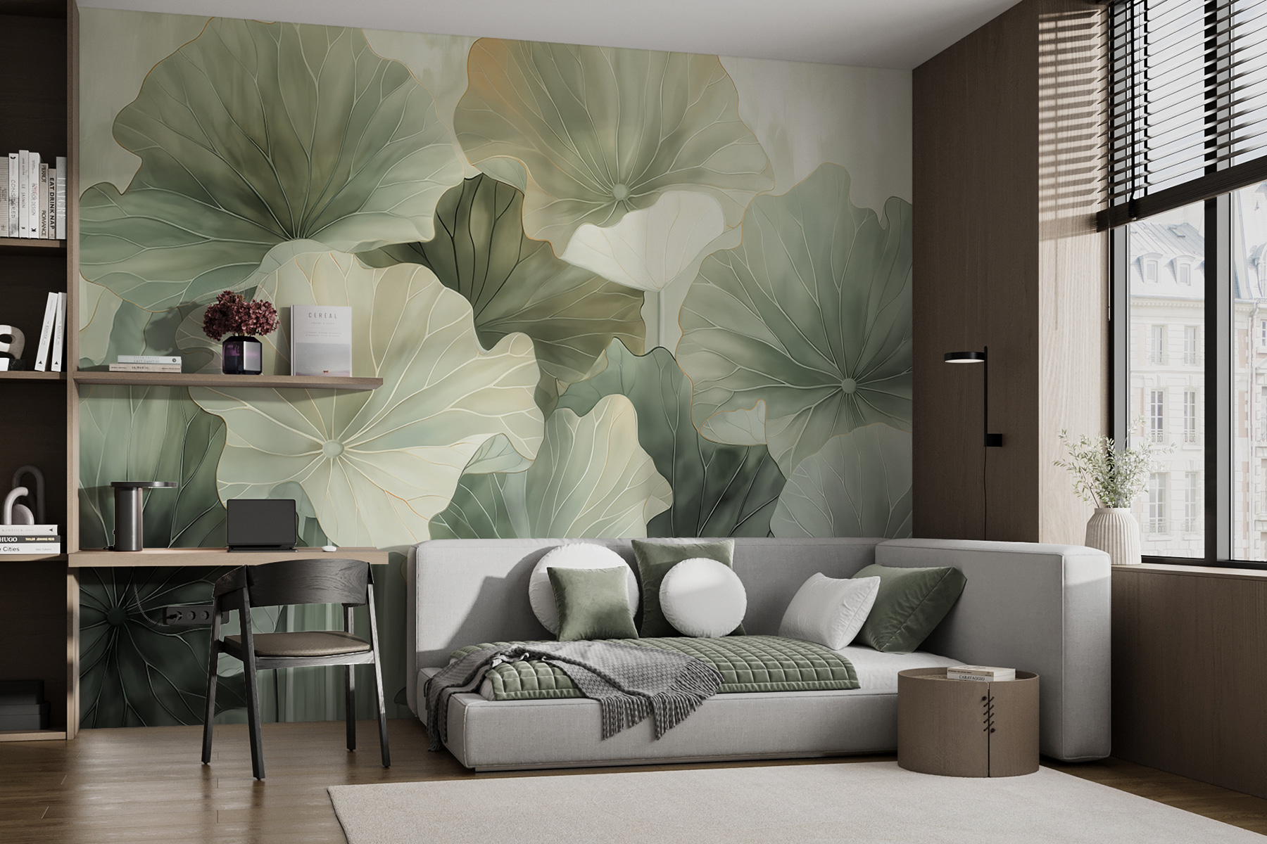 Voyez exactement à quoi ressemblera votre espace avec un nouveau papier peint avant d’acheter. Visualisation professionnelle par des designers experts, sans aucun coût ni obligation d’achat.