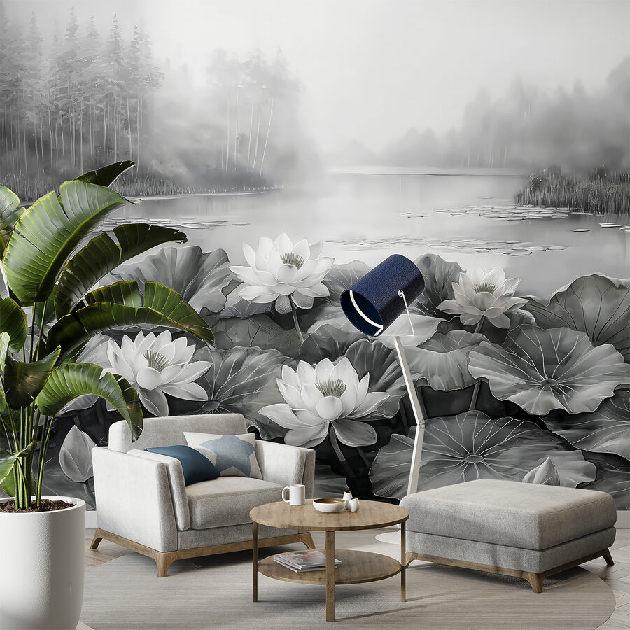 Transformez un mur ordinaire en un lieu d’évasion sereine grâce à cette superbe peinture murale représentant des fleurs blanches dansant sur un lac paisible. Imaginez que vous rentriez chez vous, que vous enleviez vos chaussures et que vous soyez accueilli par la douce élégance de ces fleurs. Il y a quelque chose d’apaisant dans la façon dont les douces ondulations et la toile de fond brumeuse créent un sentiment de calme, parfait pour se détendre après une longue journée. Que ce soit dans un salon confortable ou une chambre à coucher sereine, cette peinture murale apporte une touche de nature à l’intérieur, donnant l’impression d’une retraite paisible. Qui n’en voudrait pas ? Pensez à tous ces moments passés à vous imprégner de la beauté des lieux, peut-être en buvant une tasse de thé ou en vous plongeant dans un bon livre. C’est comme si vous disposiez d’une parcelle de nature chez vous, invitant un peu de sérénité dans la vie de tous les jours.