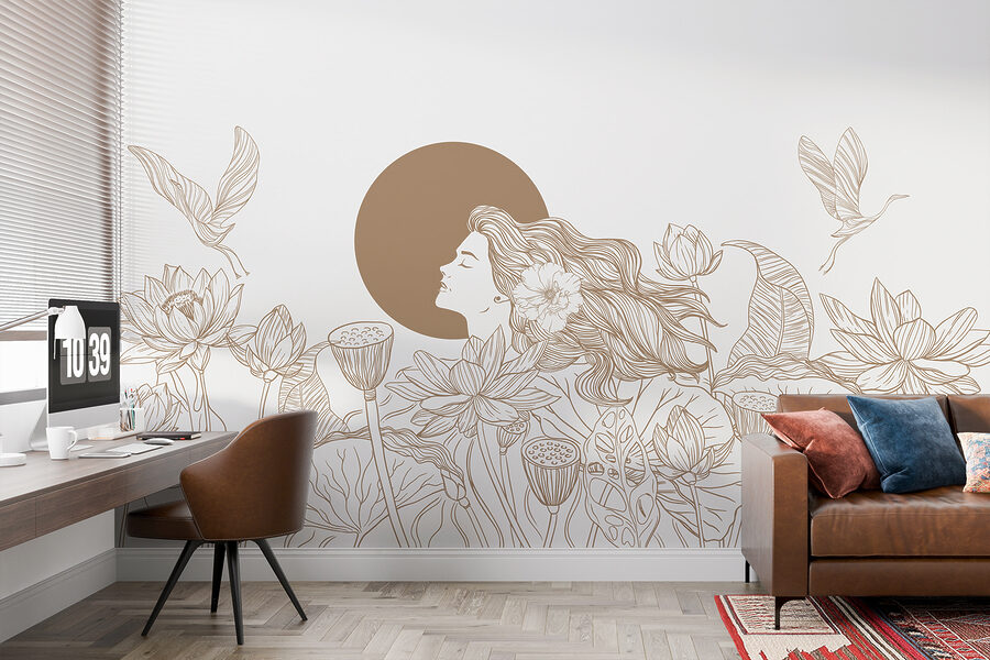 Transformez n’importe quel espace en un lieu d’évasion sereine grâce à cette superbe peinture murale représentant une femme entourée de fleurs délicates. Imaginez : après une longue journée, vous entrez dans votre chambre et êtes accueilli par des fleurs apaisantes et une ambiance paisible, comme un mini-sanctuaire chez vous. La légèreté de ses cheveux et les lignes douces créent une atmosphère accueillante. Elle est parfaite pour un coin douillet ou comme pièce d’apparat qui suscite la conversation. Imaginez-vous en train de siroter un thé tout en contemplant cette scène de rêve et en sentant le stress s’envoler. Simple, mais enchanteur ! Vos murs vous remercieront.