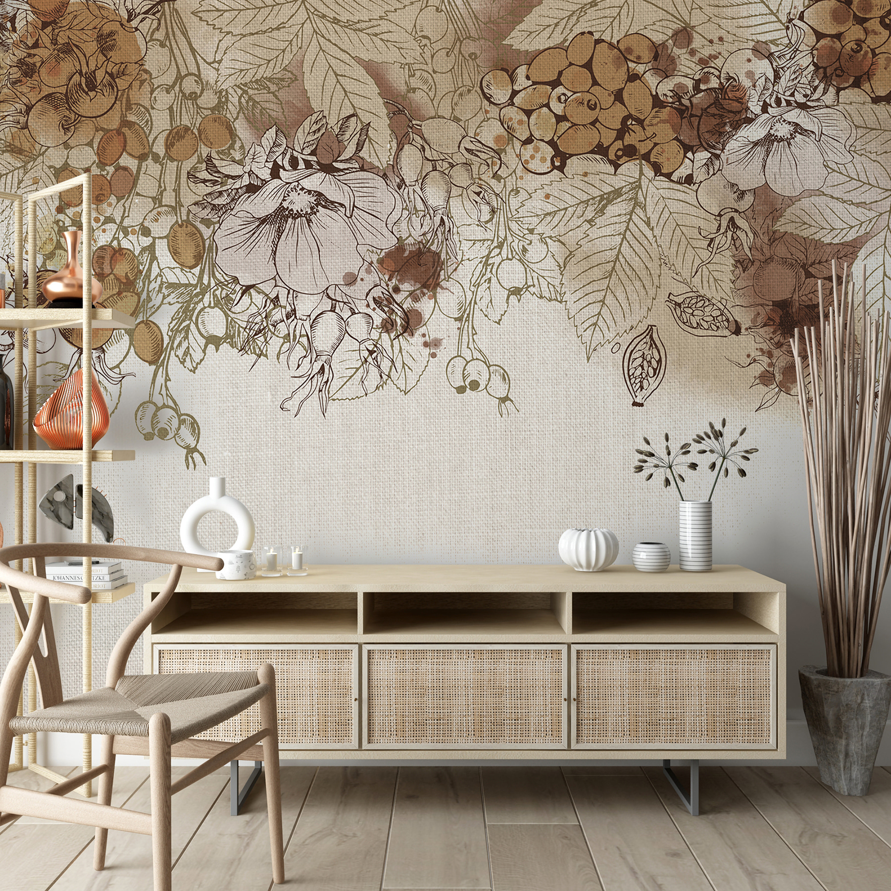 Transformez n’importe quel espace avec le charme d’Autumn Harvest dans les tons sépia. Cette peinture murale capture l’essence de l’automne avec des dessins délicats et une palette chaude et terreuse qui est à la fois confortable et invitante. Imaginez-vous en train de vous blottir dans une tasse de cidre chaud tout en contemplant cette beauté sur votre mur – c’est comme si vous apportiez une touche de récolte à l’intérieur ! L’interaction ludique des couleurs douces et des détails complexes inspire une rêverie sereine et pleine de nature. Parfait pour un salon, il ne manquera pas de susciter des conversations. Les amoureux de la nature se sentiront comme chez eux, comme s’ils se promenaient dans un verger tranquille à la fin de l’automne, s’imprégnant de la beauté de la nature. Ajoutez-le à vos murs et voyez votre espace s’animer de chaleur et de caractère !