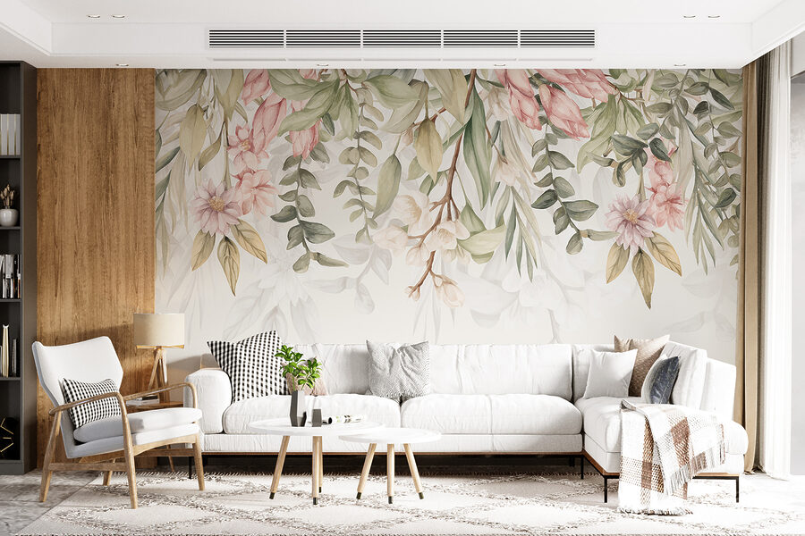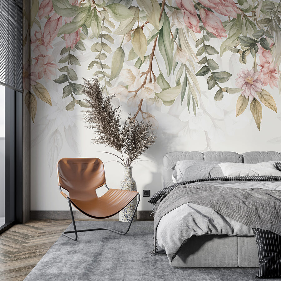 Le mélange de roses tendres et de verts subtils crée une atmosphère apaisante et invitante, parfaite pour un café paresseux le dimanche matin ou une soirée de détente avec un bon livre. On a l’impression d’entrer dans une esquisse botanique, apportant juste la bonne touche de fraîcheur et de sérénité. Pensez à ces jours où vous voulez être entouré de beauté et de simplicité – cette peinture murale est faite pour vous.
