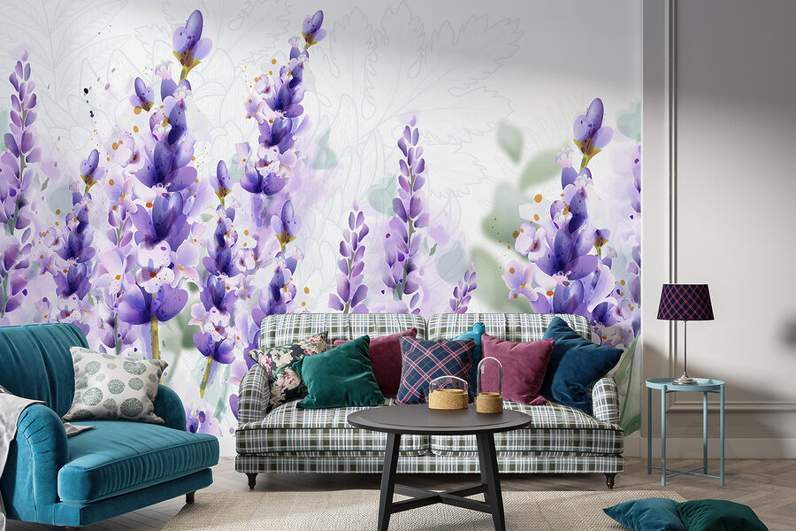 Voici quelque chose qui donnera un coup de jeune à n’importe quelle pièce : une peinture murale débordant de lavande ! La peinture murale “Papier peint w08231”, c’est comme entrer dans un jardin d’aquarelles de rêve, directement chez vous. Imaginez que vous vous endormez avec ces doux violets et verts qui dansent sur vos murs.