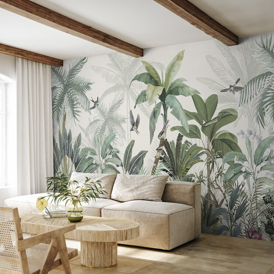Transformez n’importe quel espace en un havre tropical grâce à cette superbe peinture murale. C’est comme si vous aviez une partie de la jungle chez vous, avec de la verdure luxuriante et des oiseaux joyeux qui volent. Imaginez que vous sirotiez votre café du matin en étant accueilli par de douces vibrations tropicales. Sérieusement, y a-t-il une meilleure façon de commencer la journée ? Ce papier peint ne se contente pas de changer la pièce, il invite la nature à l’intérieur, en murmurant des après-midi de brise et des aventures ensoleillées. Parfait pour un salon ou même un coin lecture confortable, c’est une petite évasion sur vos murs. Chaque regard donne l’impression d’une mini-vacance, dans le confort de la maison.