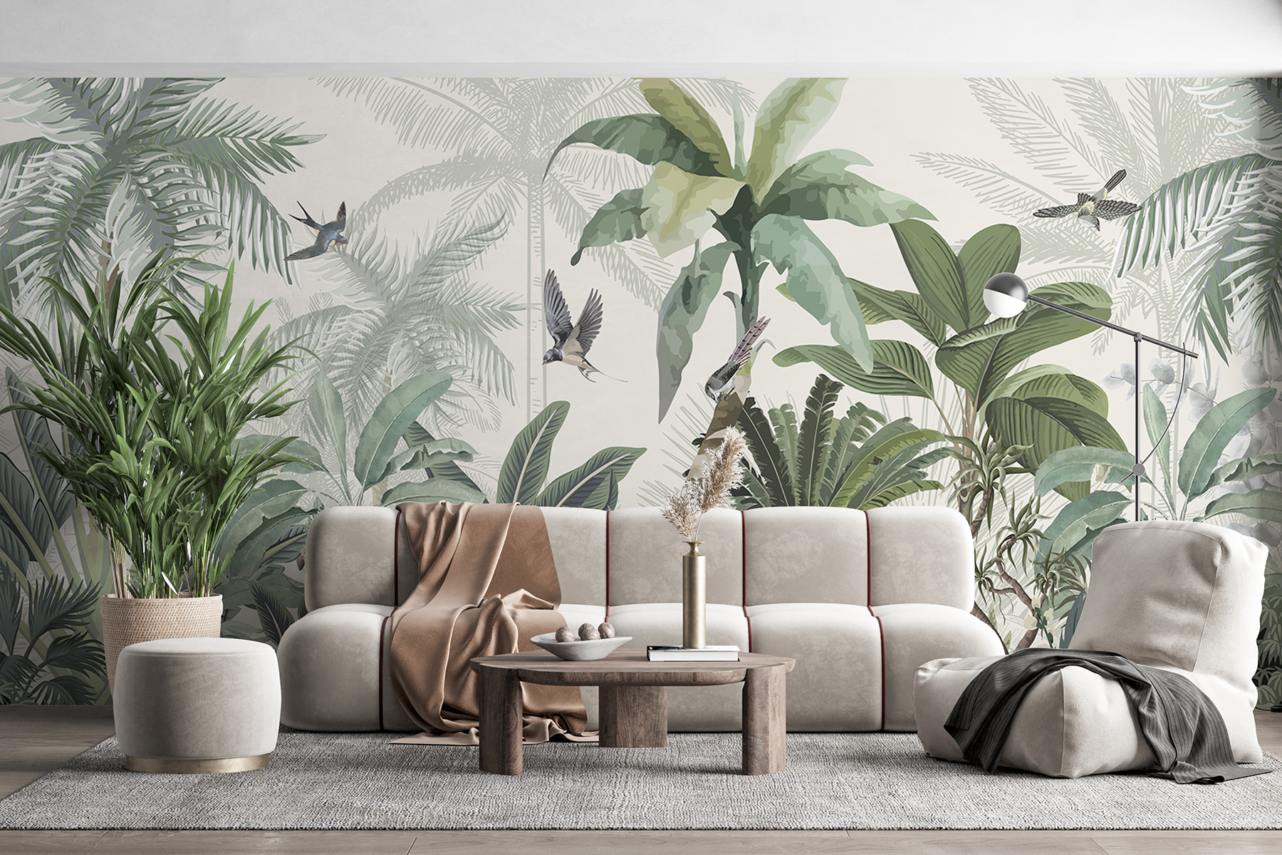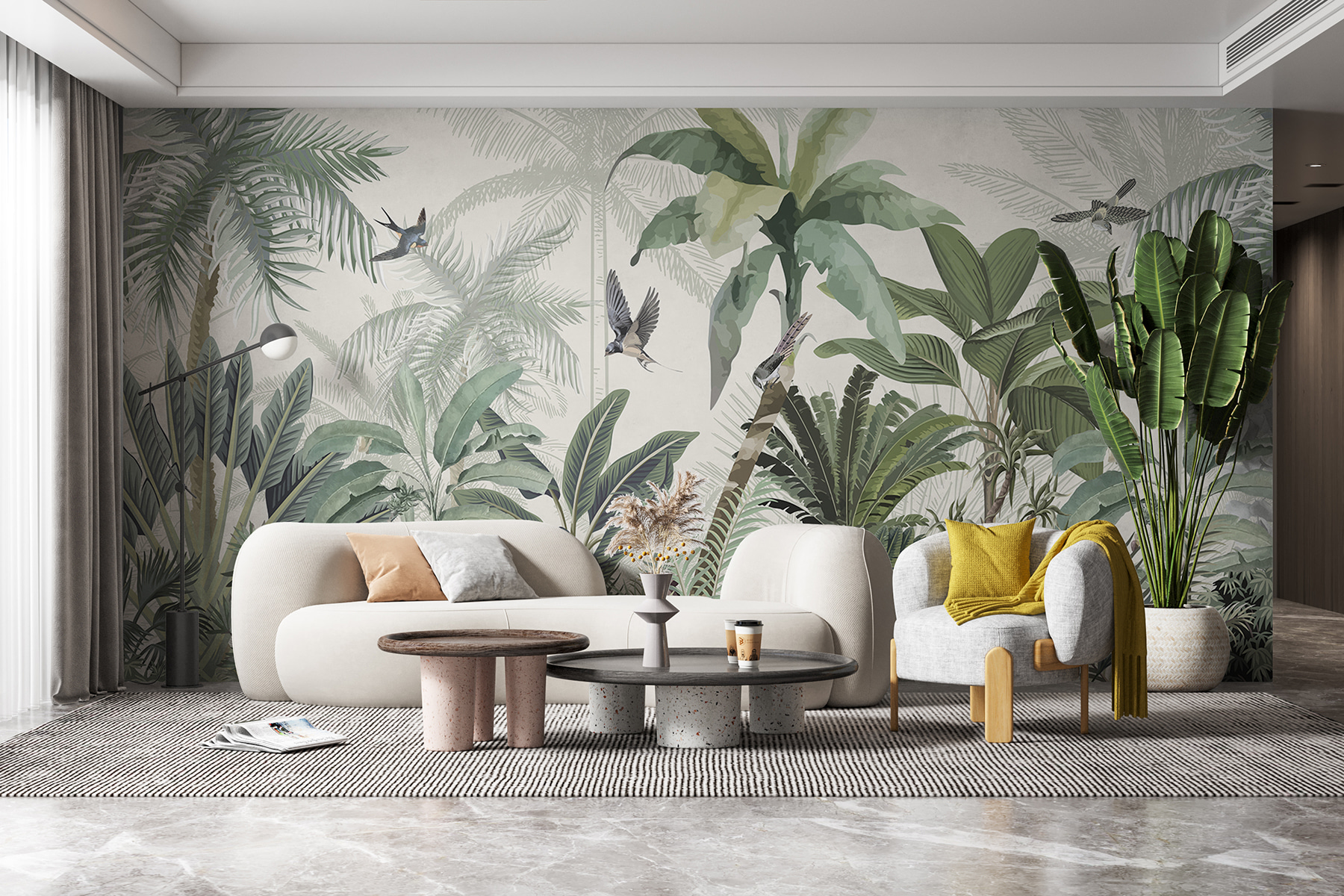 Transformez n’importe quel espace en un havre tropical grâce à cette superbe peinture murale. C’est comme si vous aviez une partie de la jungle chez vous, avec de la verdure luxuriante et des oiseaux joyeux qui volent. Imaginez que vous sirotiez votre café du matin en étant accueilli par de douces vibrations tropicales. Sérieusement, y a-t-il une meilleure façon de commencer la journée ? Ce papier peint ne se contente pas de changer la pièce, il invite la nature à l’intérieur, en murmurant des après-midi de brise et des aventures ensoleillées. Parfait pour un salon ou même un coin lecture confortable, c’est une petite évasion sur vos murs. Chaque regard donne l’impression d’une mini-vacance, dans le confort de la maison.