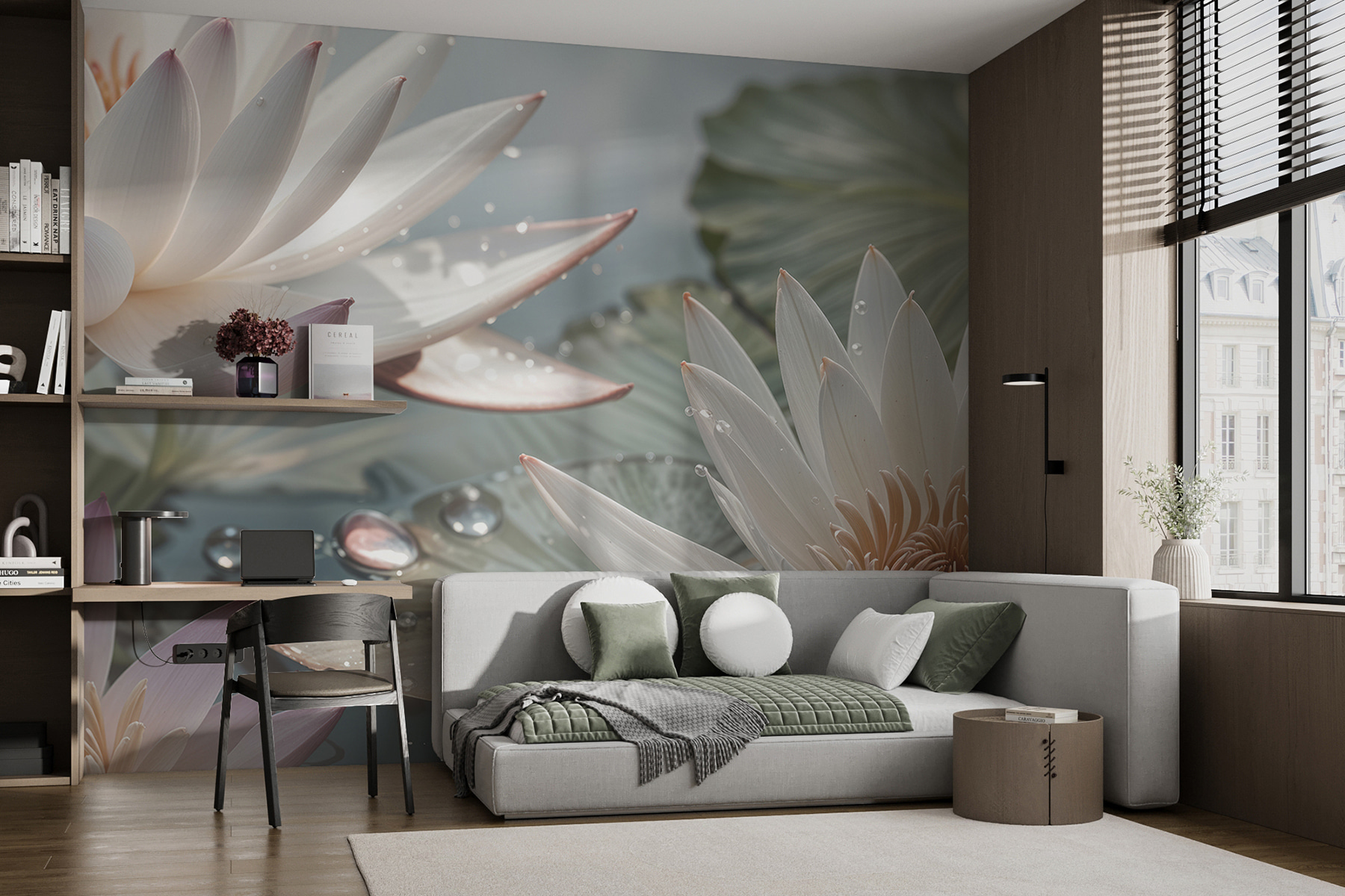 Imaginez que vous vous réveillez dans une pièce qui ressemble à un matin apaisant au bord d’un lac, où les fleurs de lotus scintillent sous l’effet de la rosée fraîche – un plaisir vraiment simple. Cette peinture murale n’est pas qu’un simple décor ; c’est une porte d’entrée vers le zen, qui rend les lundis matin un peu plus gracieux. Imaginez-vous dans un fauteuil confortable avec une tasse de thé, entouré de cette scène sereine. C’est un peu de l’art de la nature qui s’étale sur votre mur. Parfait pour trouver un moment de paix dans le chaos – ou, du moins, faire semblant.